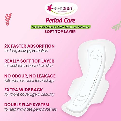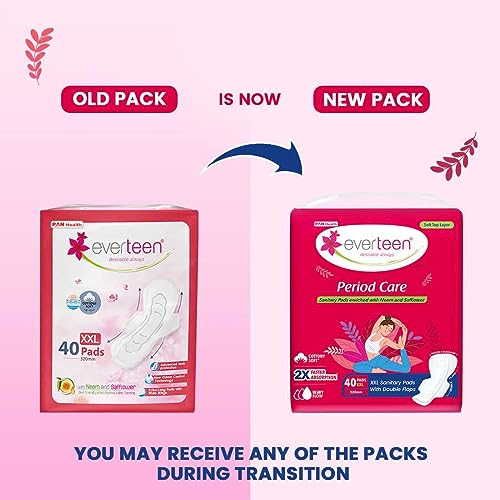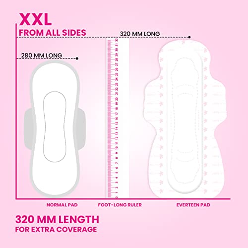 everteen Period Care XXL Soft Neem-Safflower Sanitary Pads for Women - 40 Pads, Rash Free, Anti Tan, Skin Friendly, Double Wing Shape, Advanced Leak Protection, XX Large, 320mm - 1 Pack (40 Pads)