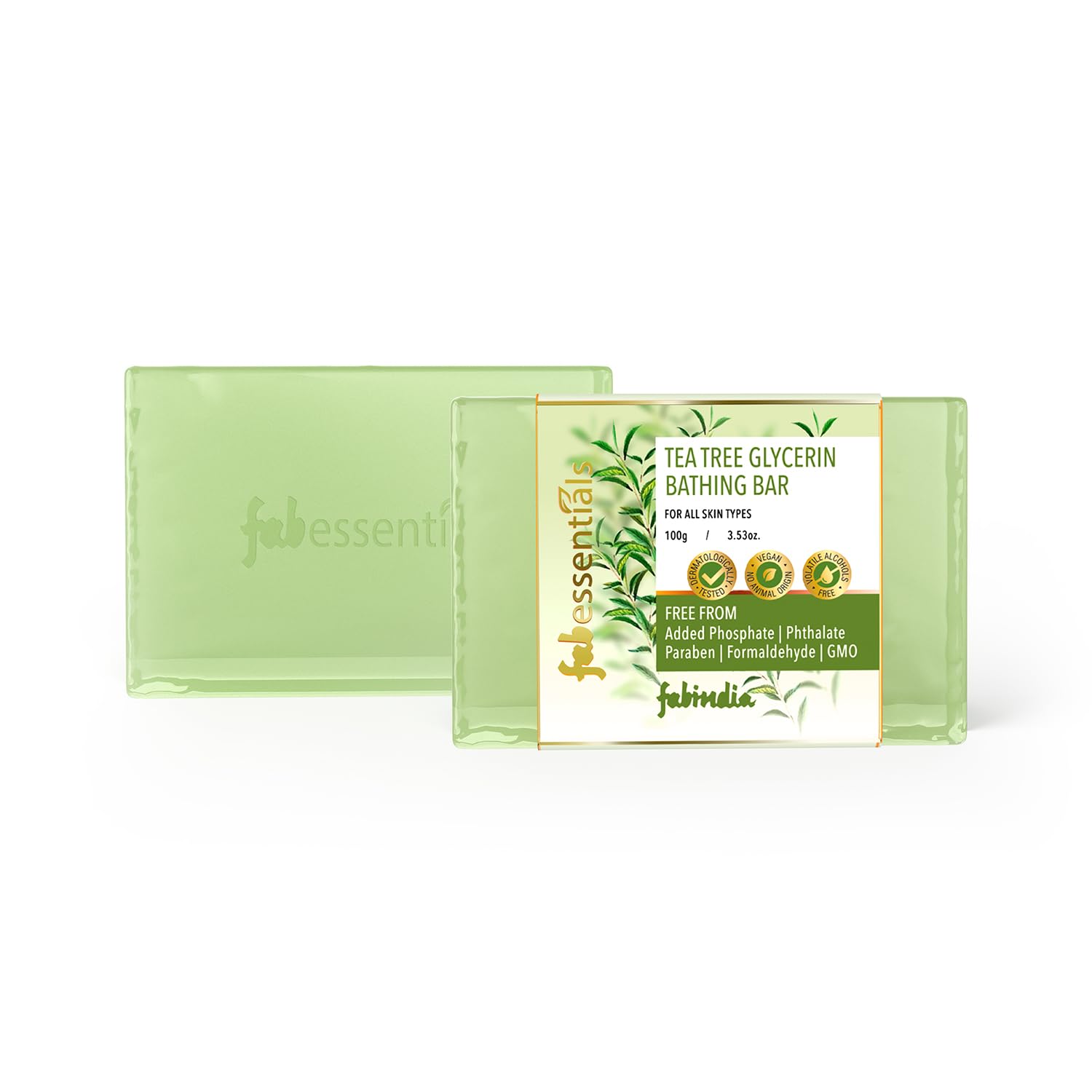 8x Fabessentials Tea Tree Glycerin Bathing Bar | with Natural Bioactives | Cleansing, Refreshing and Nourishing | Vegan & Toxin Free - 100 gm Pack of 8