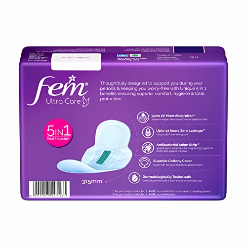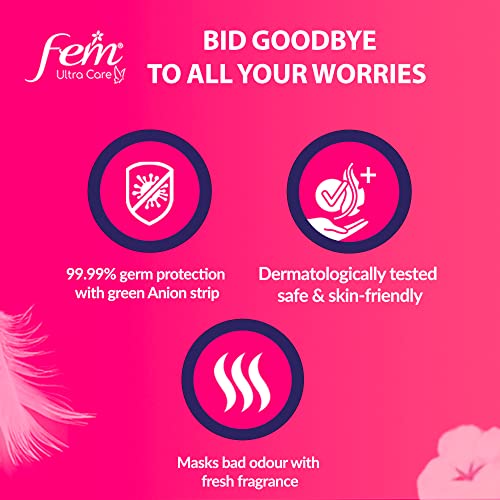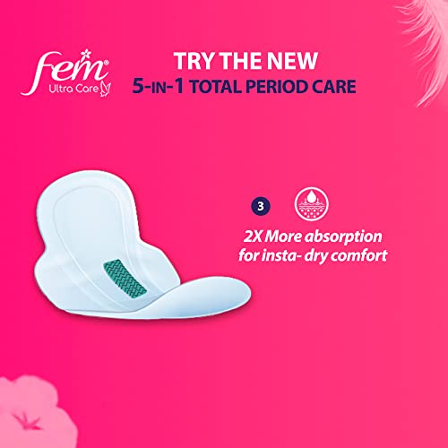 Fem Ultra Care Sanitary Pads for Women - XL+(Pack of 50) with wings| 2X higher absorption technology | Zero leakage up to 12 hours | Dermatologically tested |99.99% germ protection