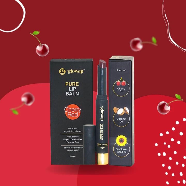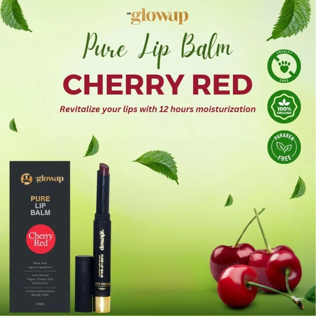 HK Glowup Pure Lip Balm - Cherry Red Balm | 100% Natural Vegan, Cruelty Free | Lip Care & Radiant Glow - Soft, Smooth Lip, Nourishing and Moisturizing Lip balm, Cherry Lips (2.0gm)