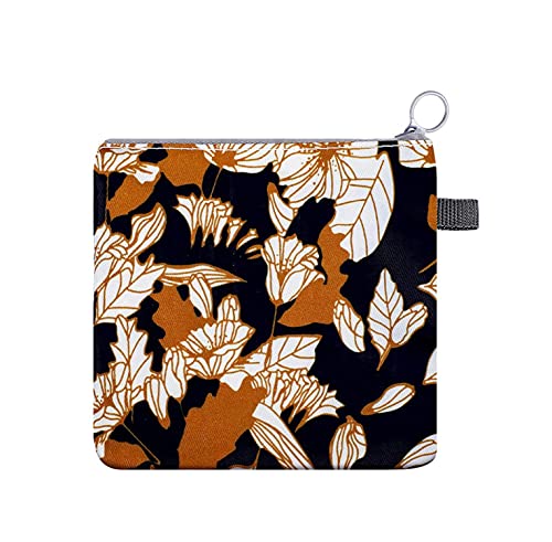 House of Quirk Sanitary Napkin Storage Bag, Menstrual Pad Bag with Zipper, Napkin Storage for Purse, First Period Kit for Teens Girls, Storing Sanitary Pads for Women (B - Brown Flower)