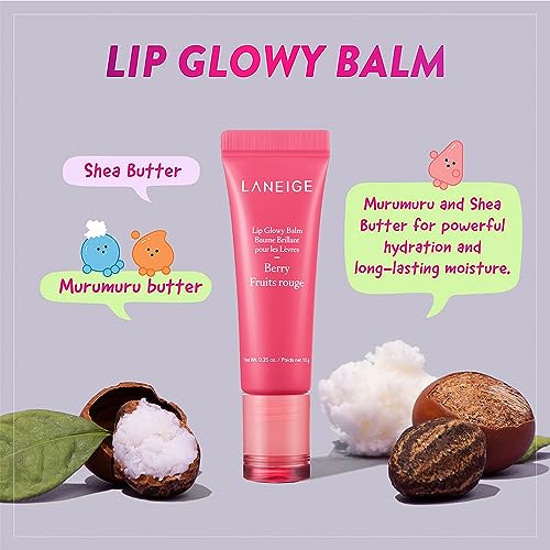 Laneige Lip Glowy Balm | Moisturizing Lip Treatment with Vitamin C + Shea Butter for Soft, Smooth and Glowing Lips | Korean Lip Balm For Dry Chapped Lips |Intense Hydration| Berry |10Gm