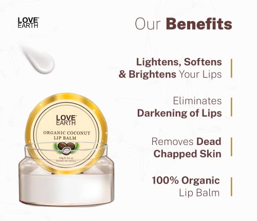 Love Earth Coconut Lip Balm For Dry & Chapped Lips, An Ayurvedic Lip Moisturizer With Vitamin E, Shea Butter & Cocoa Butter 10gm