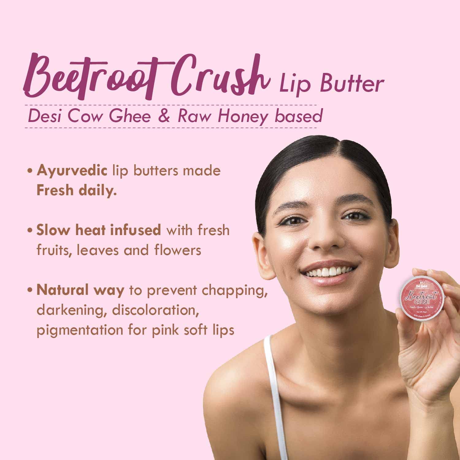 Nat Habit Lip Balm Fresh Beetroot Crush 10gm Lip Butter With Desi Ghee & Raw Honey For Natural Pink Lips, Nourishment, Dark And Chapped Lips - (Pack of 1)