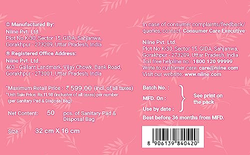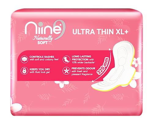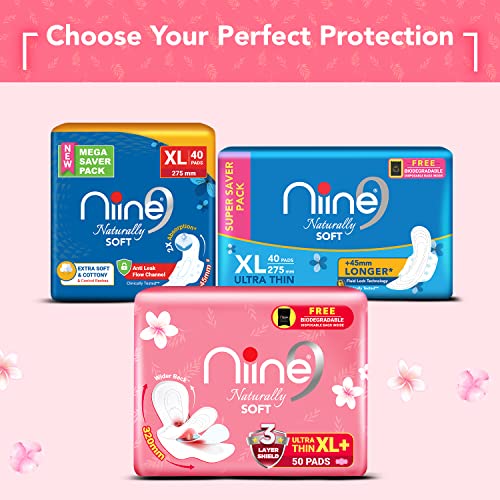 NIINE Naturally Soft Ultra Thin XL+ Sanitary Napkins for Heavy Flow (Pack of 1) 50 Pads with Free Biodegradable Disposal Bags