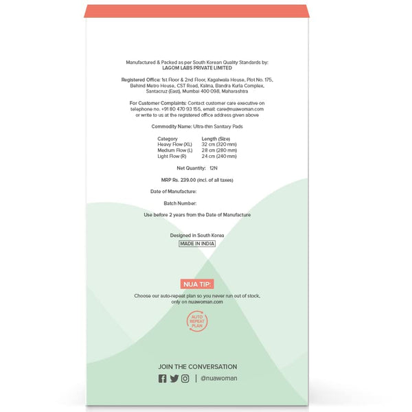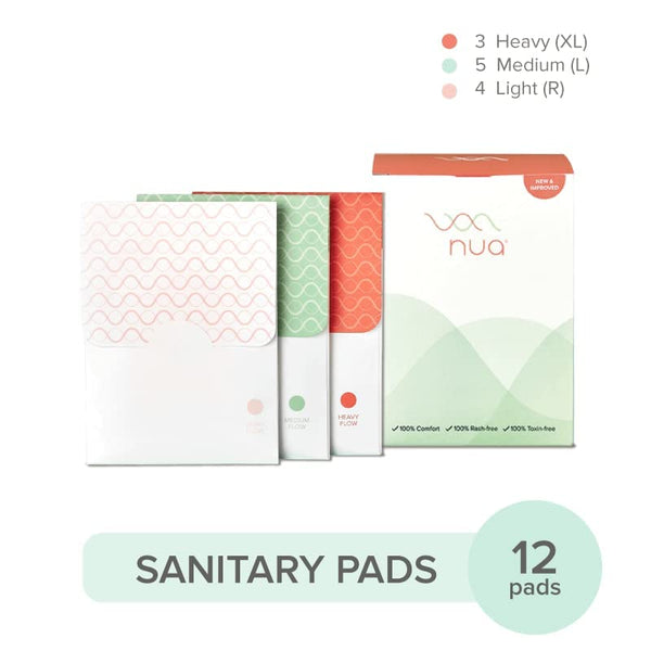 Nua Ultra-Safe Sanitary Pads For Women | 12 Ultra Thin Pads | 3 sizes in 1: Heavy Flow-XL+, Medium-XL & Light-L | Safe on Skin | Toxic-Free & Rash-Free | Unscented | Leakproof | With 12 Secure Shield Covers