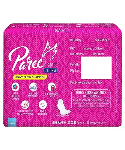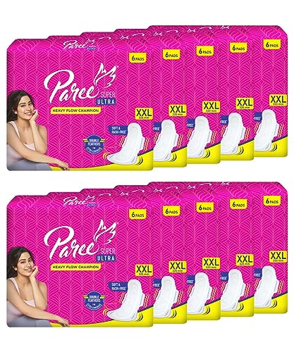 Paree Super Ultra Soft Feel Double Feathers Sanitary Pads for Women (Trifold)|XXL-60 Pads (Combo of 10)|Quick Absorbtion|Disposable Covers|Wide Coverage