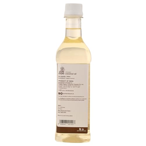 Pure & Sure Cold Pressed Virgin Coconut Oil 500ml | 100% Natural, Organic & Pure Nariyal Tel | Used for Cooking, Skin, Hair,Baby massage| Nutrient Rich & Chemical Free