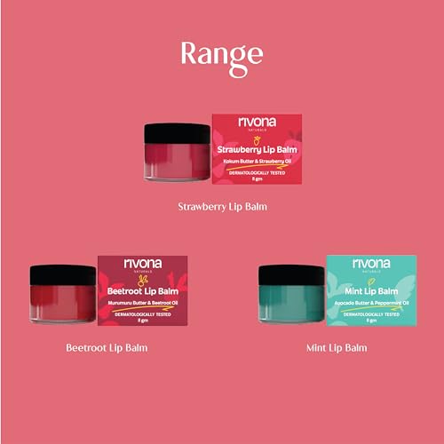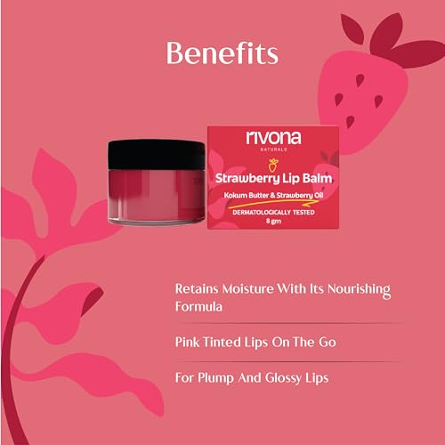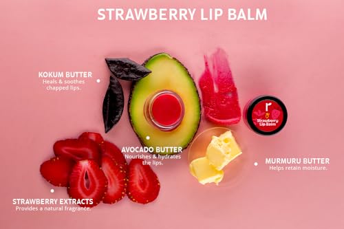 Rivona Naturals Strawberry Lip Balm | Avocado Butter + Kokum Butter | Moisturizing and Plumping | For Men & Women | 8 gm