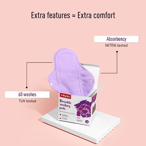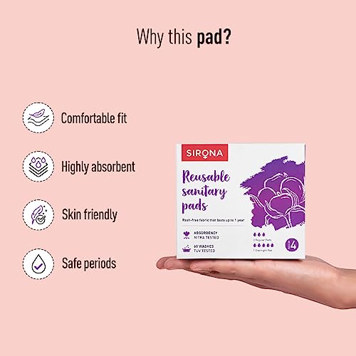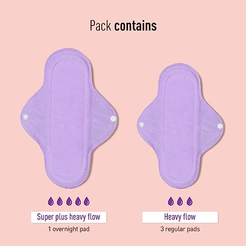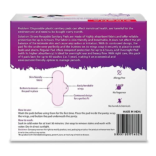 Sirona Reusable Pads for Women | 3 Regular Pads + 1 Overnight Pad | Cloth Pads for Women for Period, Reusable Sanitary Pads for Women, Rash Free Fabric, Skin Friendly, Lasts Up To 1 Year - (Pack of 4)
