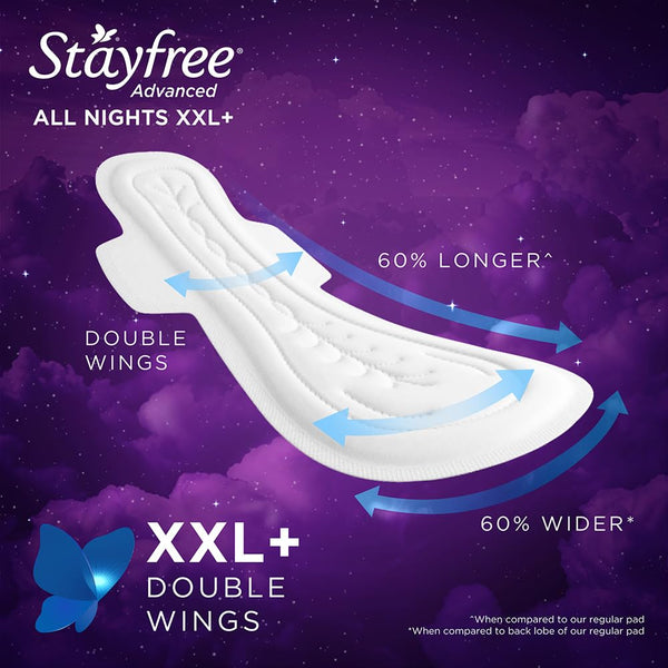 Stayfree Advanced XXL+ Ultra Thin Sanitary Pads for Women | 16 Soft Cotton Pads for All Night Ultra Comfort | Absorbs 2x More with Wider Back | Prevent Rashes | Odour Control
