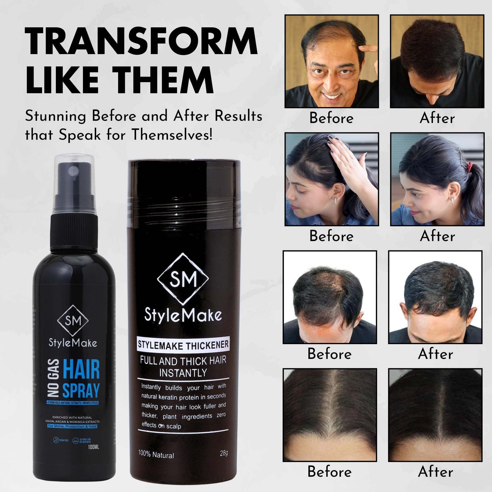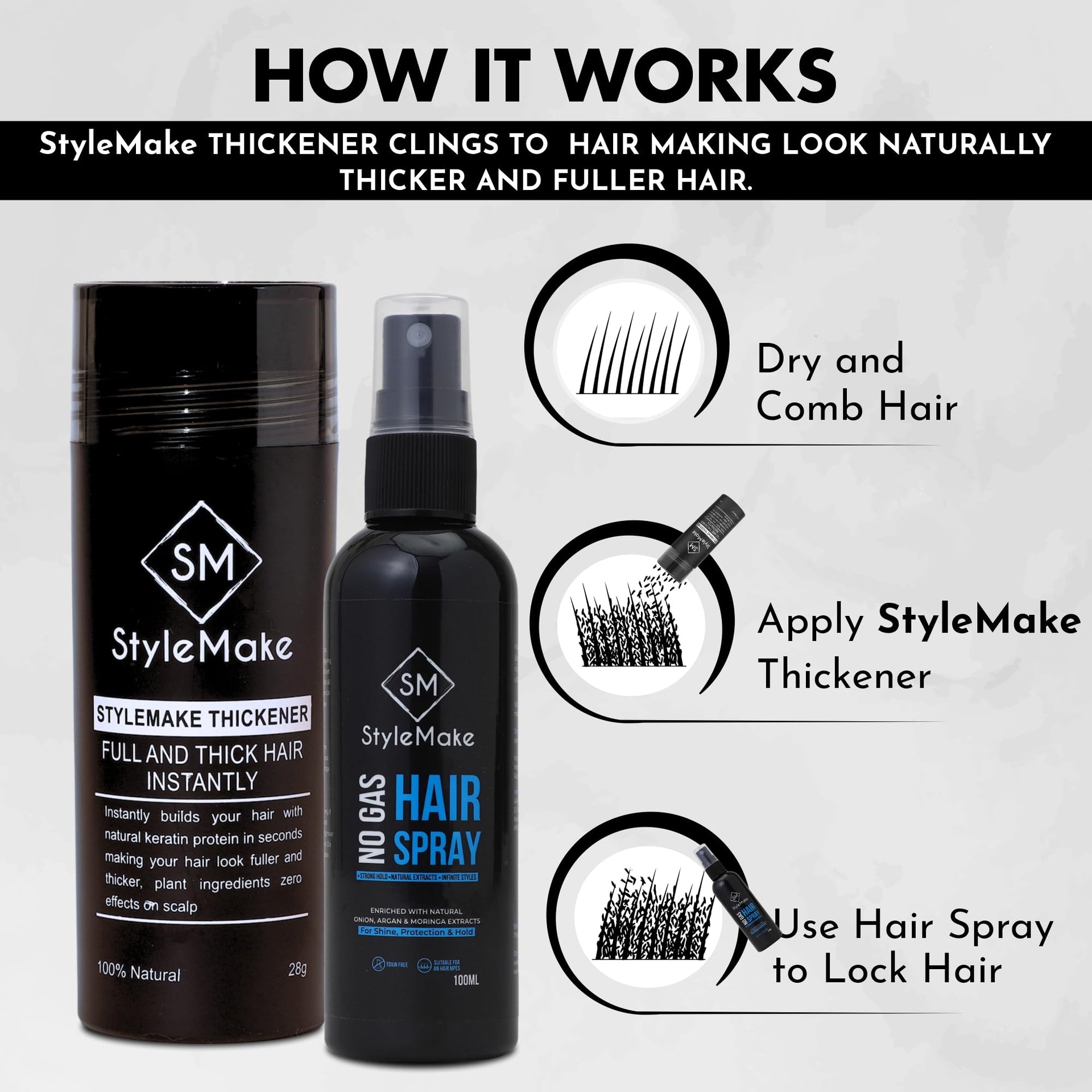 STYLEMAKE Thickener Hair Loss Concealer With Hair Spray - Hair Building Fibers - Hair Fibers For Thin & Fine Hair - Hair Thickening Fibers For Men & Women- Combo Pack (Black) -28 Grams