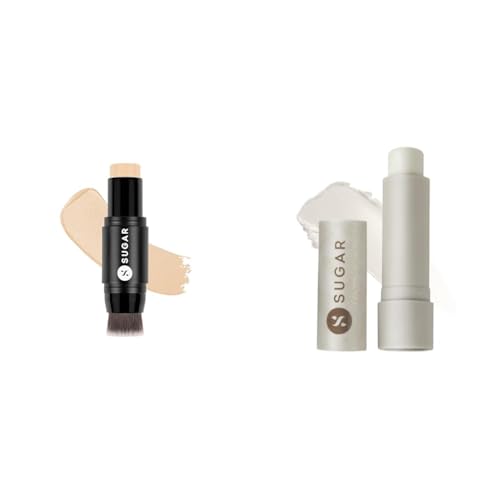 SUGAR Ace Of Face Mini Foundation Stick with In-Built Brush & SUGAR Cosmetics - Tipsy Lip Balm - 03 Pinacolada - 4.5 gms - Lip Moisturizer