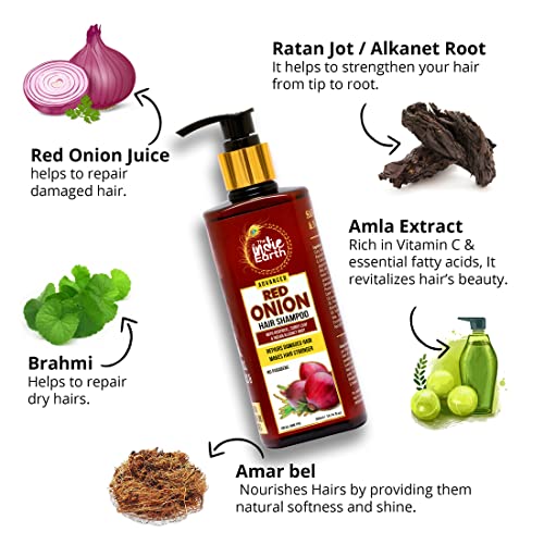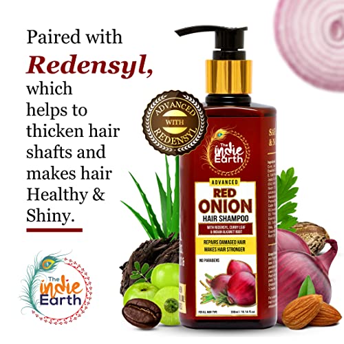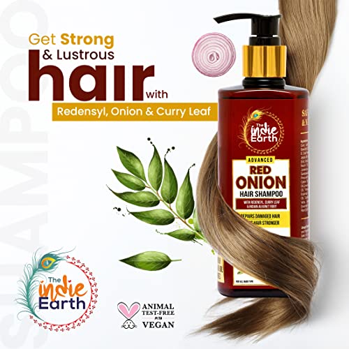 4x The Indie Earth Advanced Red Onion Shampoo 300ml/10 Fl.Oz with 15+ natural ingredients including Red Onion, Curry Leaf & Indian Alkanet Root - Pack of 4