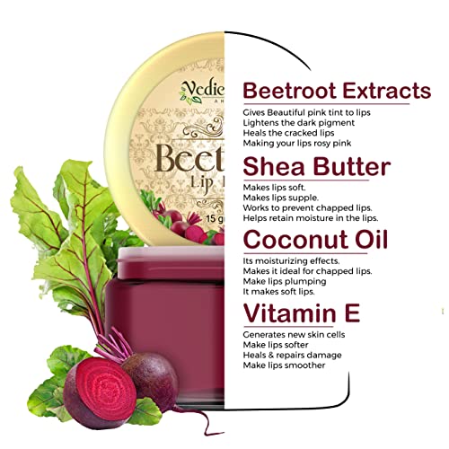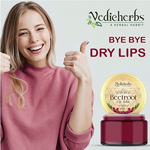 Vedicherbs Beetroot Lip Balm with Natural Beetroot Extract, Shea Butter & Almond Oil | Pinky Goodlooking Nourished Lips | Natural Lip Balm for Women & Men (15 gm.)