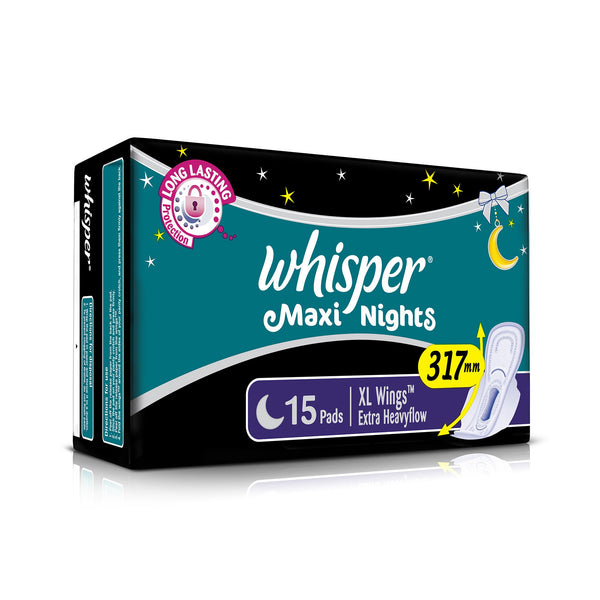 Whisper Maxi Nights Sanitary Pads for Women, XL, Pack of 15 Napkins