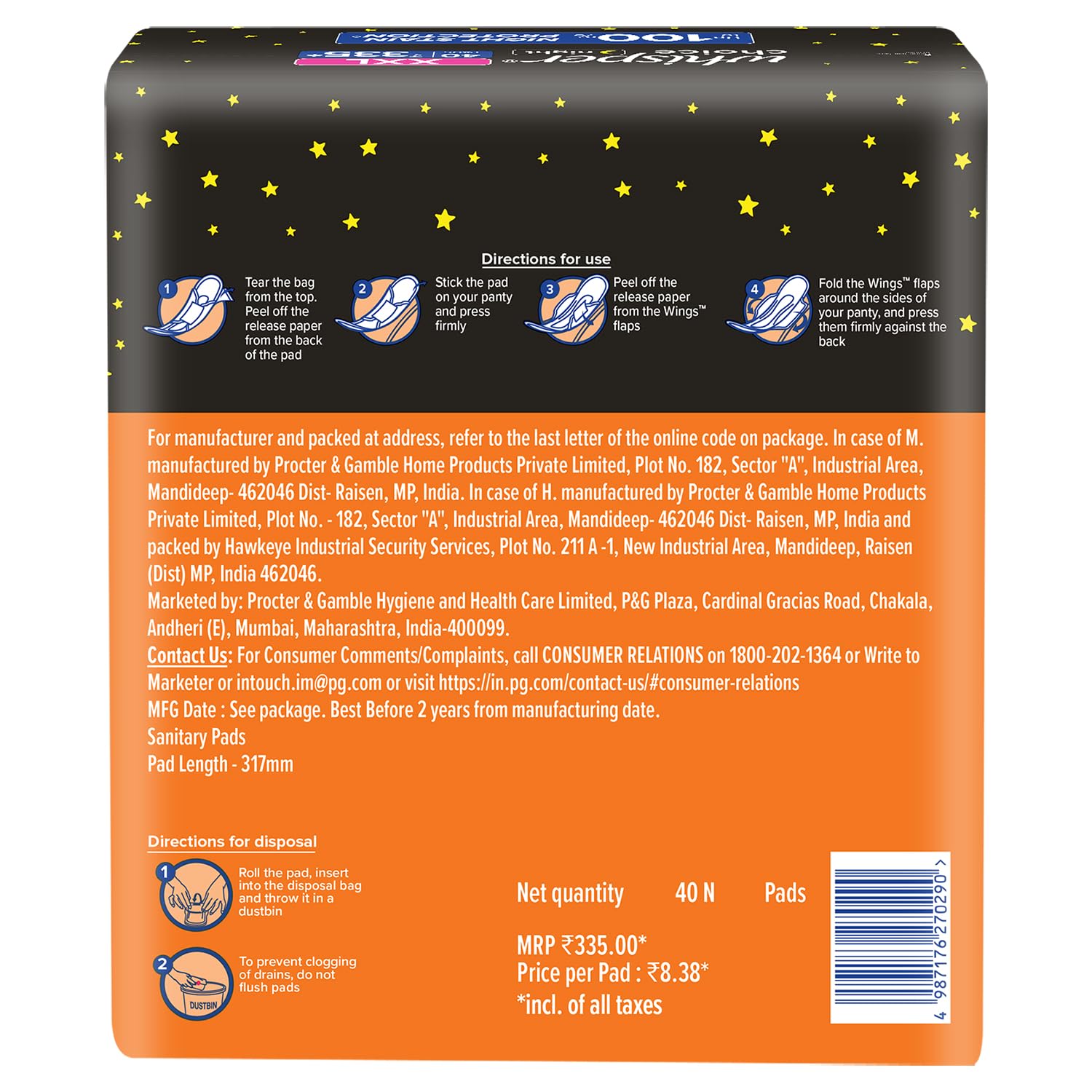 Whisper Ultra Overnight Sanitary Pad For Women With Wings - XXl, 40 Pads