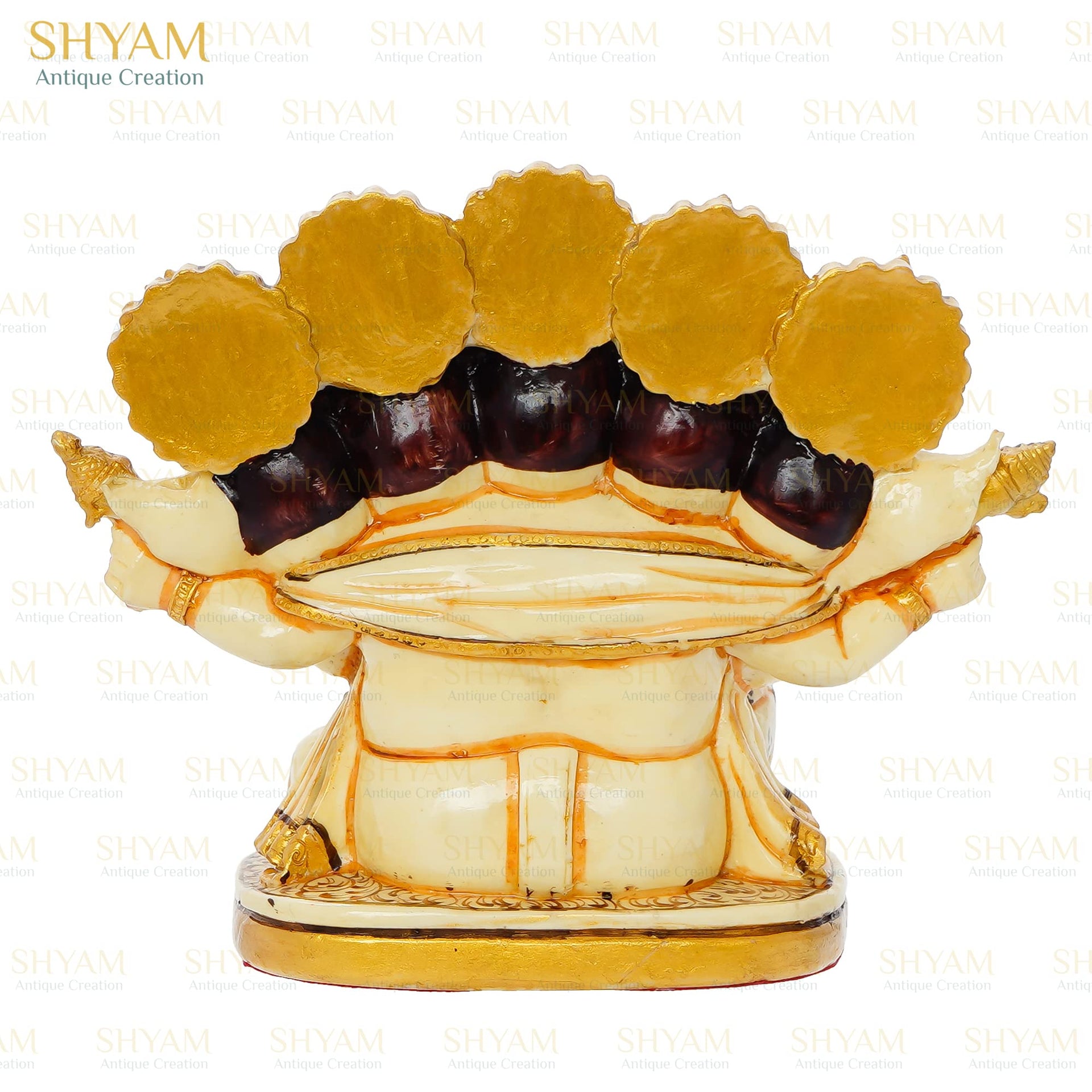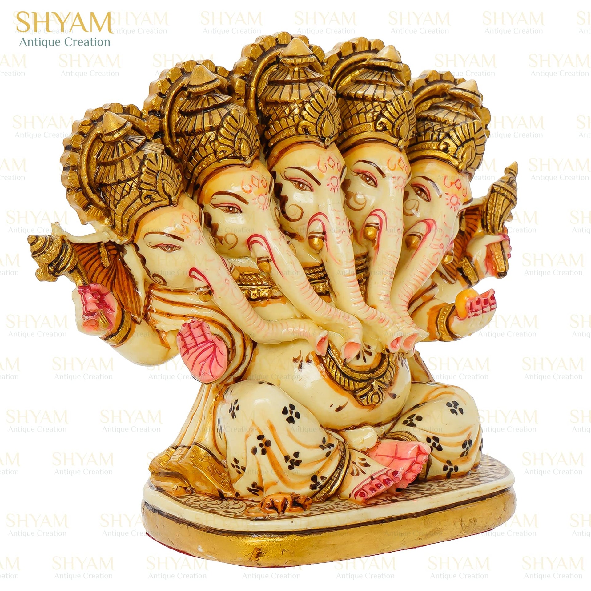 Panchmukhi Ganesha Idol Statue Energized 5 Faced/Mukhi Ganesha Figurine Ganpati Murti for Pooja, Antique Finish Figurine Marble Dust God Statue Ganpati Statue
