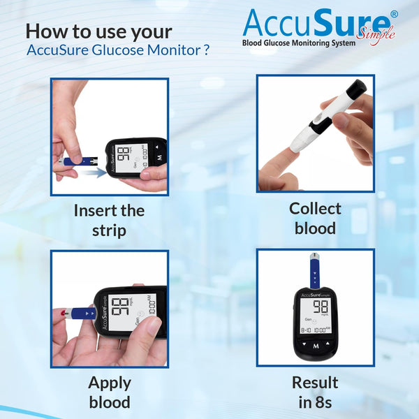 AccuSure Instant Digital Simple Glucometer Kit |with 25 Strips,10 Lancet,1 Lancing device for Accurate Blood Glucose Sugar Testing Machine