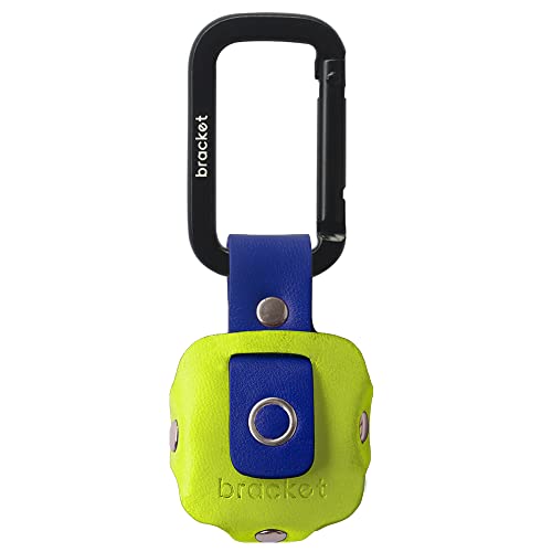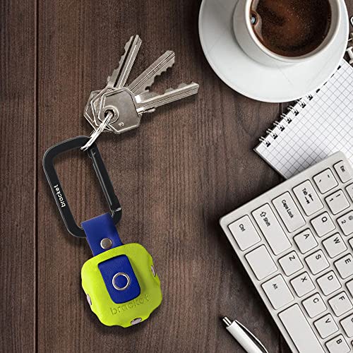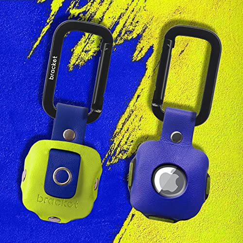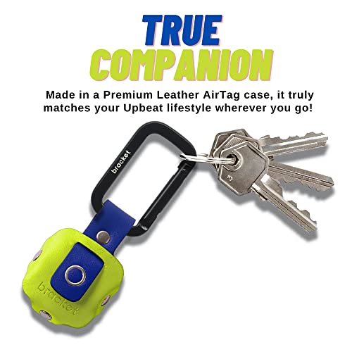 Airtag Premium Leather Key Ring Holder Case Cover Compatible with Apple Airtag, Comes with Metal Carabiner & Transparent AirTag Protective Film (1- Pack, Light Yellow and Blue) (AirTag Not Included)