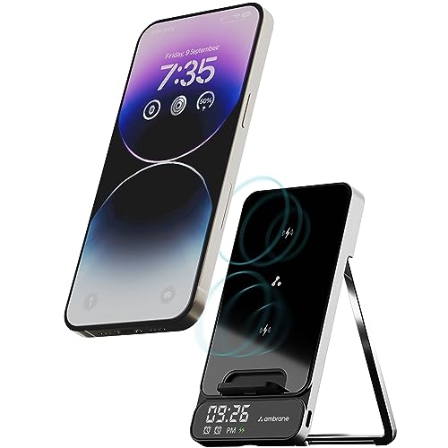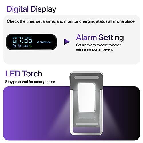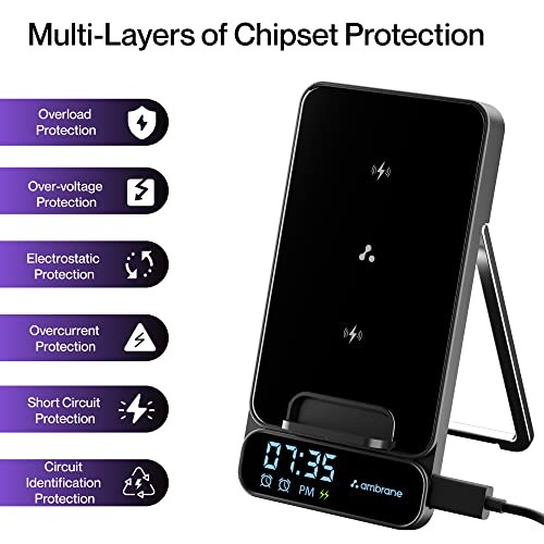 Ambrane 15W Wireless Charging Stand with Digital Display & Alarm Setting for iPhone 14/13/12 Series, Galaxy S23/S22/S21/S20/Note20 Series, Airpods & Other Qi Devices (Powerpod Pro, Black)