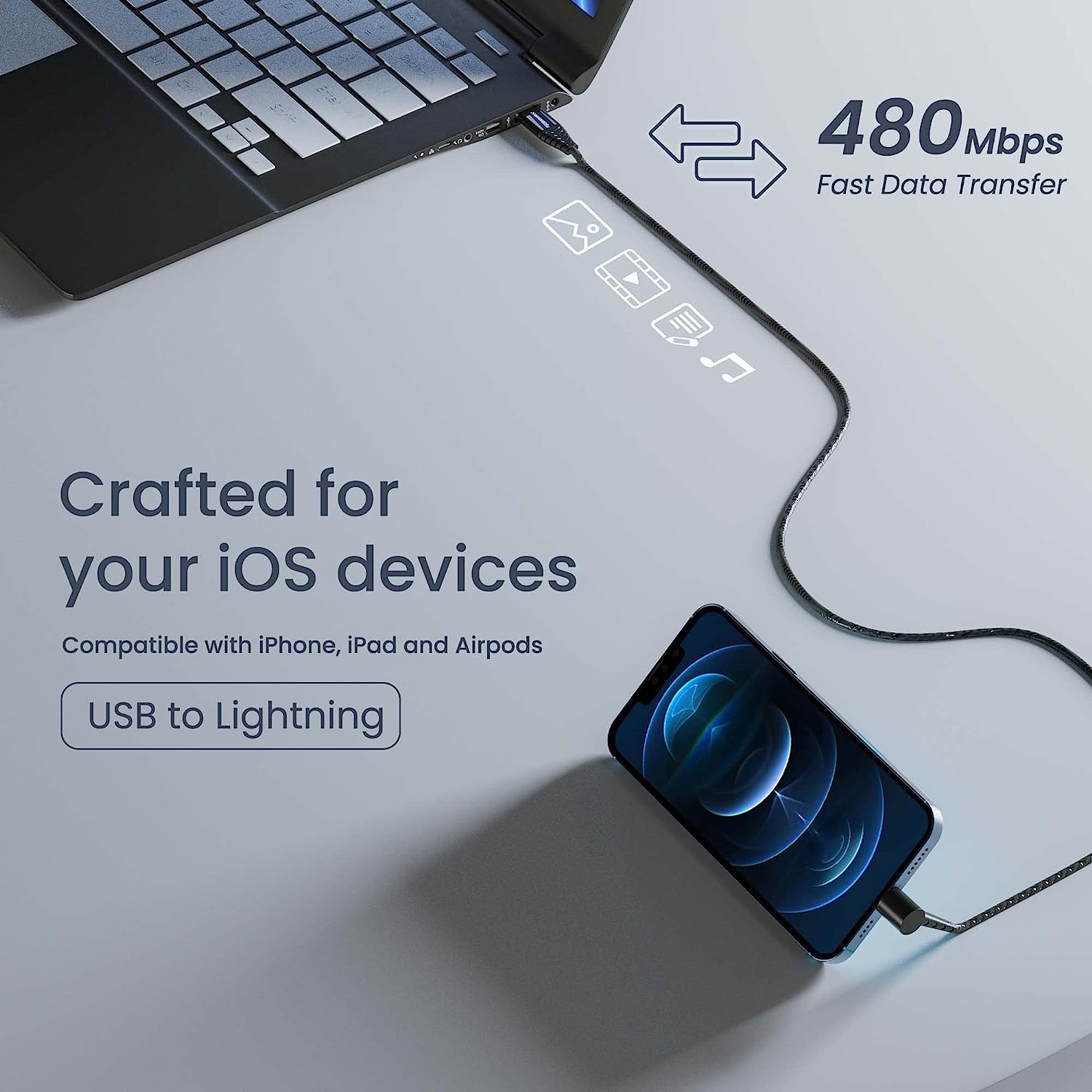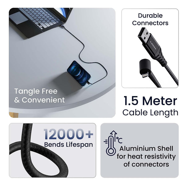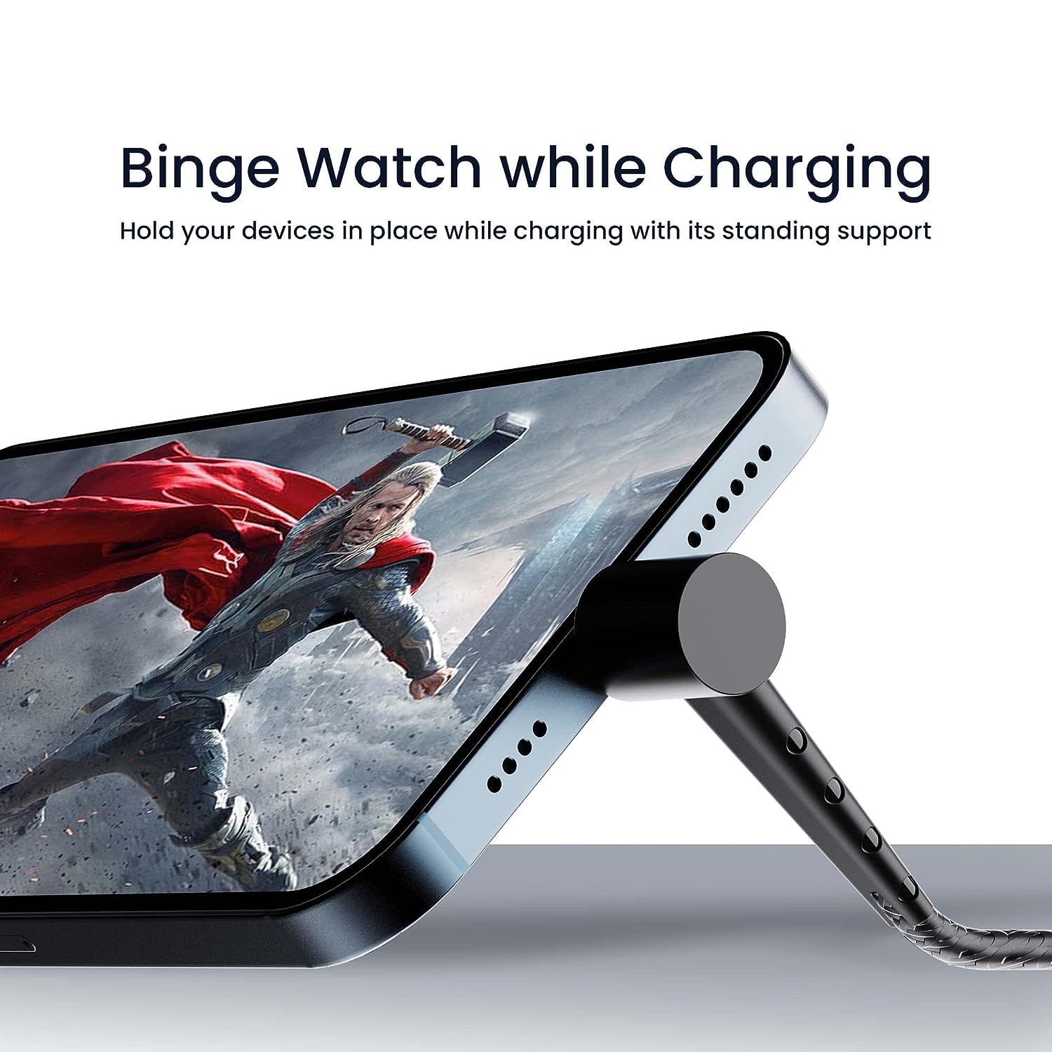 Ambrane Lightning Standing cable, 12W Fast Charging, Perfect for Holding Mobile while Charging/Binge-Watching & 480 Mbps Data Sync Cable for iPhone, iPad, AirPods - 1.5m (ABSL-15 Black)