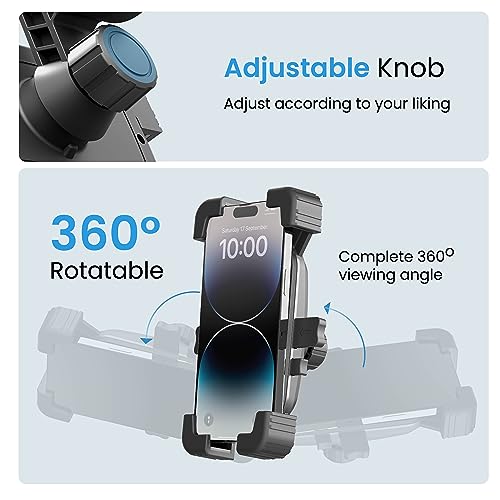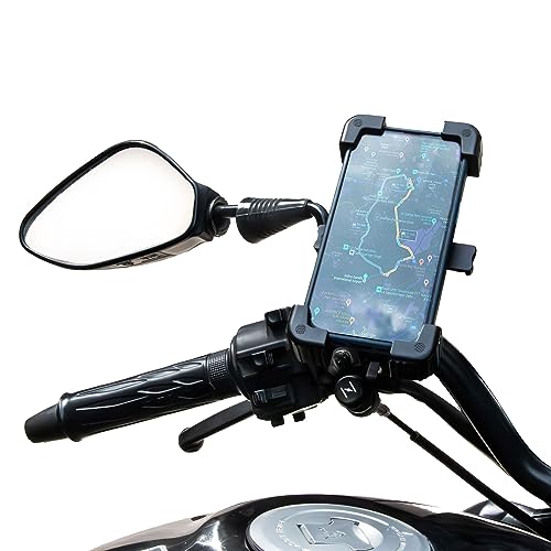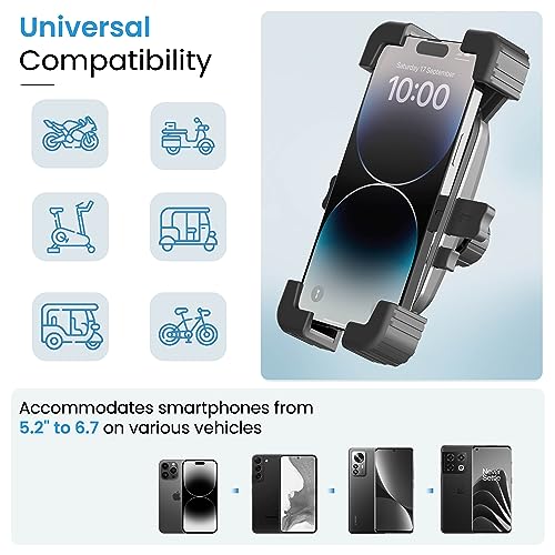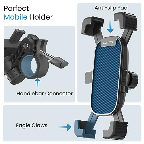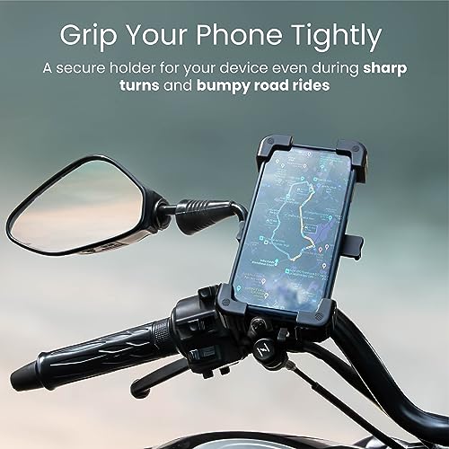 Ambrane Mobile Phone Holder Stand for Bikes, Autos, 360° Rotation, One-Click Locking, Anti-Shaking Design, Securely Holds 5.2" to 6.7" Phones, Perfect for GPS Navigation (MotoGrip)