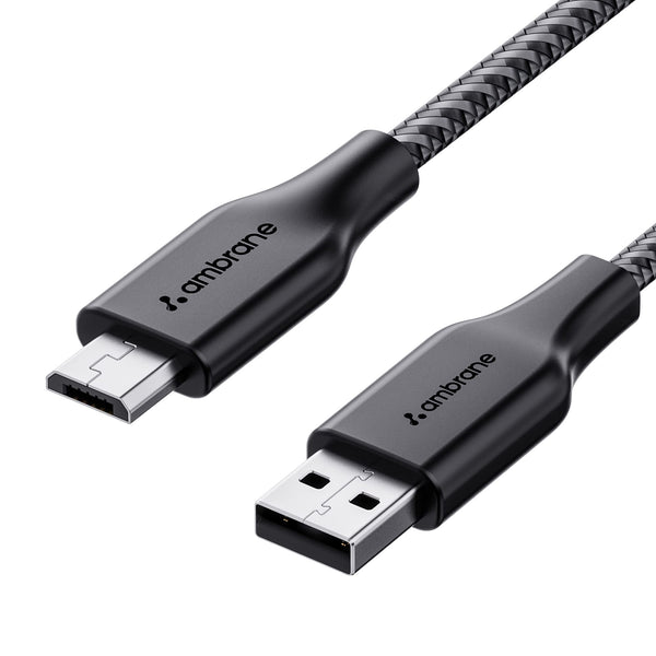 Ambrane Unbreakable 60W / 3A Fast Charging 1.5m Braided Micro USB Cable for Smartphones, Tablets, Laptops & other Micro USB devices, 480Mbps Data Sync, Quick Charge 3.0 (RCM15, Black)