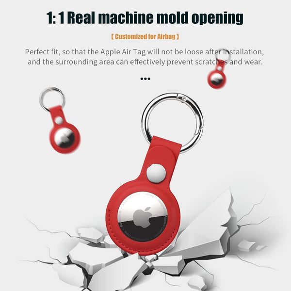 AMiRiTE ADS35 Premium Faux Leather Key Ring Holder Case Cover Compatible with Apple Airtag [ Only Key Holder Cover, Airtag Not Included ] (Black/Brown)