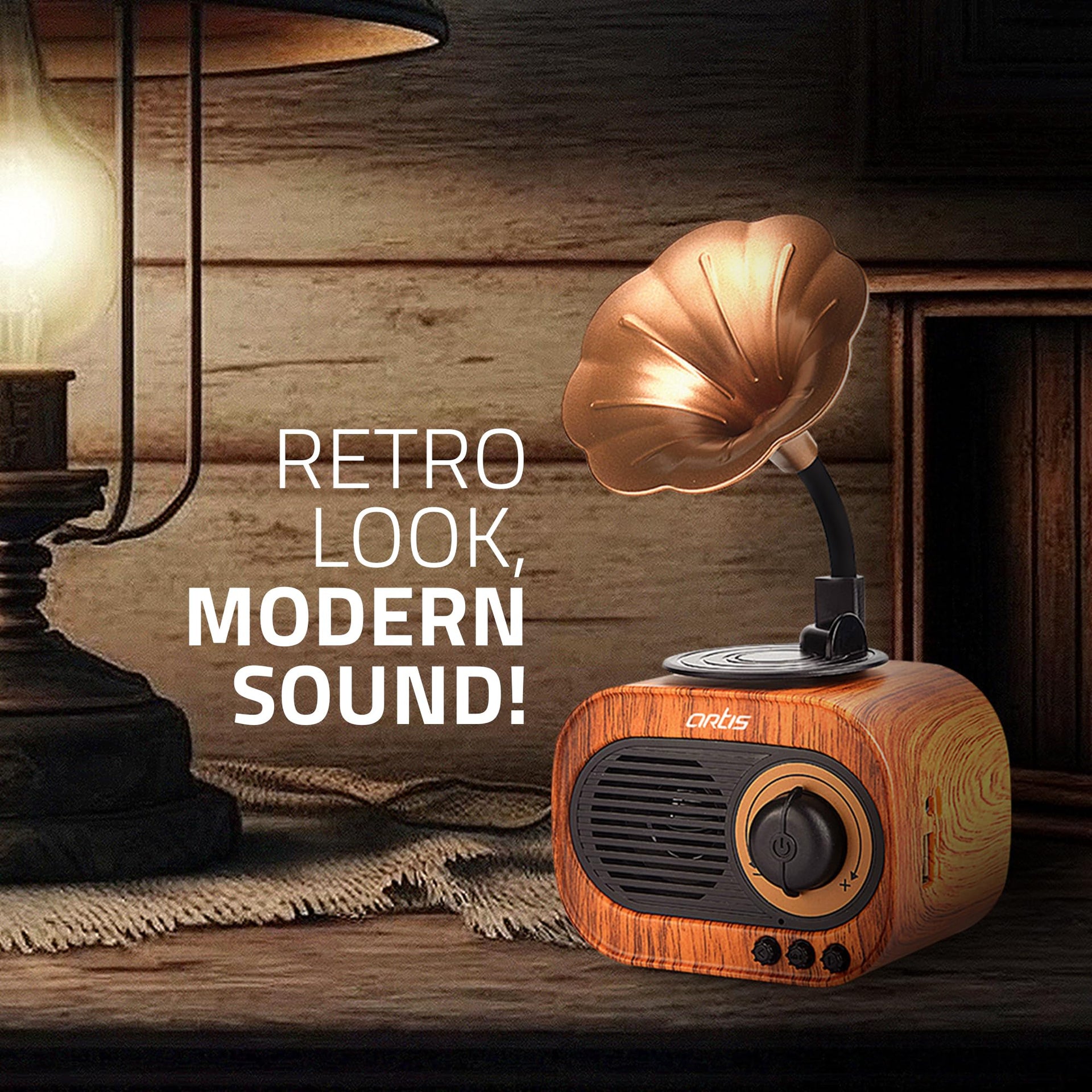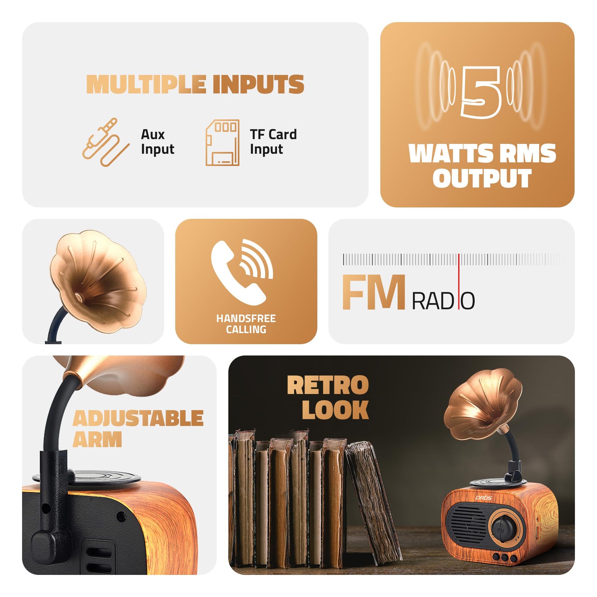 Artis BT12 Classic Retro Wireless BT Speaker with FM/USB/AUX in & Hands Free Calling (5W RMS Output)