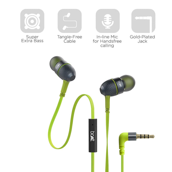 boAt Bassheads 225 Wired in Ear Earphone with Mic (Neon Lime)