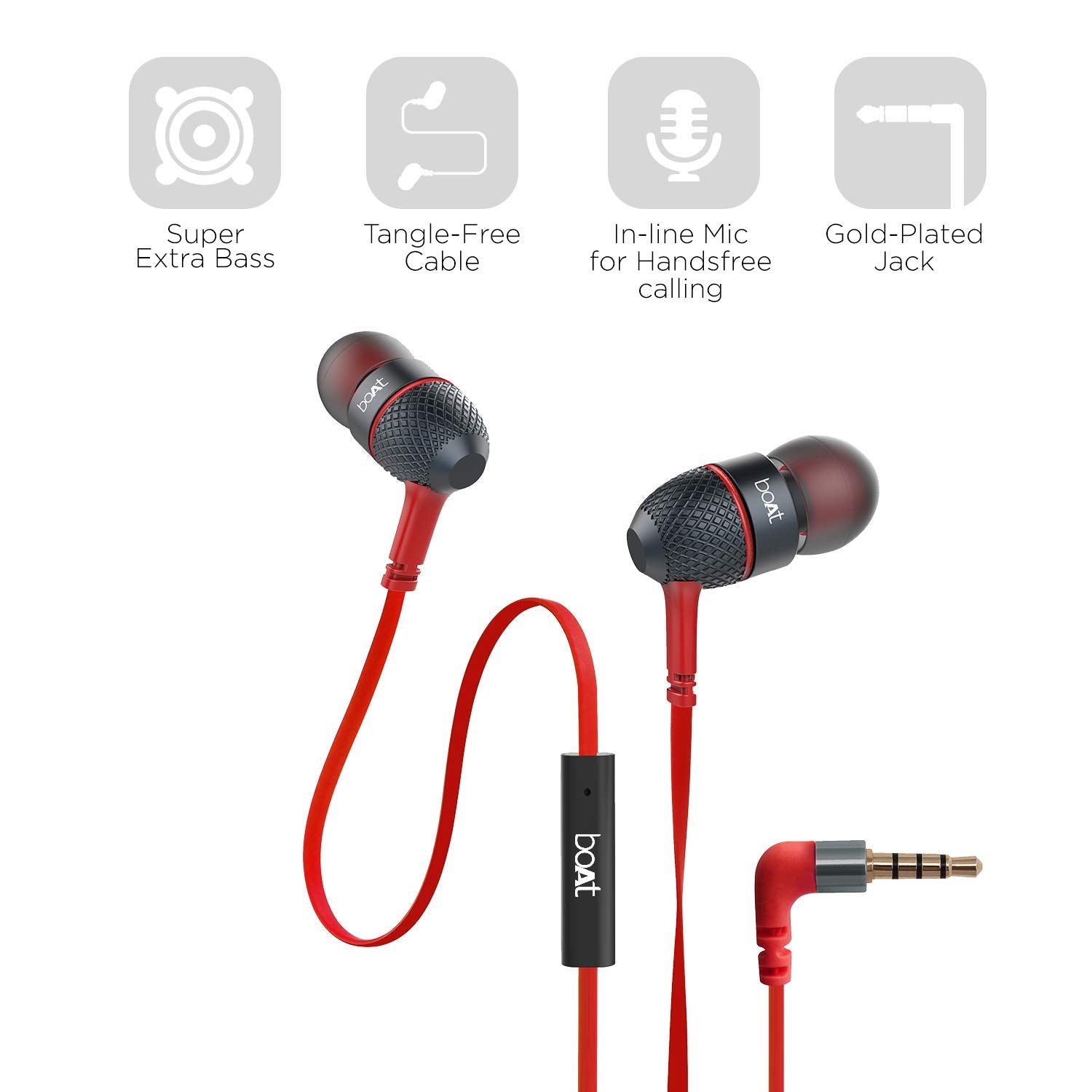boAt Bassheads 225 Wired in Ear Earphone with Mic(Red, Carry Case)