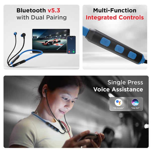 boAt Rockerz 103 Pro Bluetooth in Ear Neckband with Beast Mode(40Ms Low Latency), Enx Tech, ASAP Charge(Fast Charge), Upto 20Hrs Playback, Signature Sound, Bt V5.3 & Ipx4(Blue)