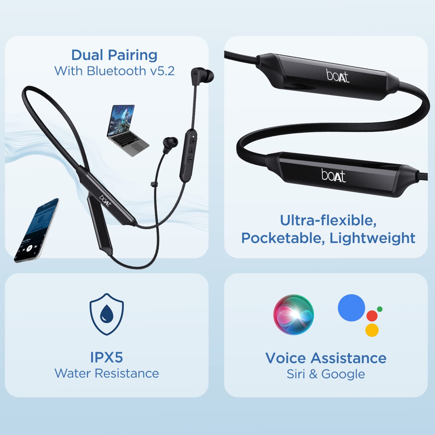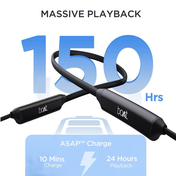 boAt Rockerz Trinity in Ear Earphones with 150H Playtime, Crystal Bionic Sound Powered by HiFi, Signature Sound, Beast™ Mode, ENx™ Tech, ASAP™ Charge,IPX5,Dual Pairing(Cosmic Black)