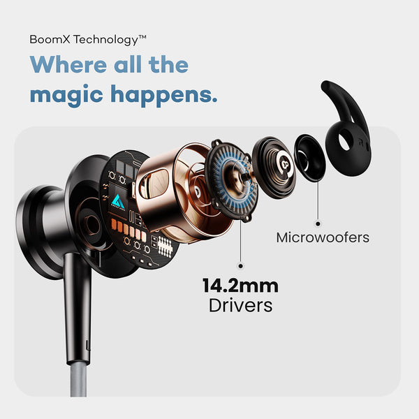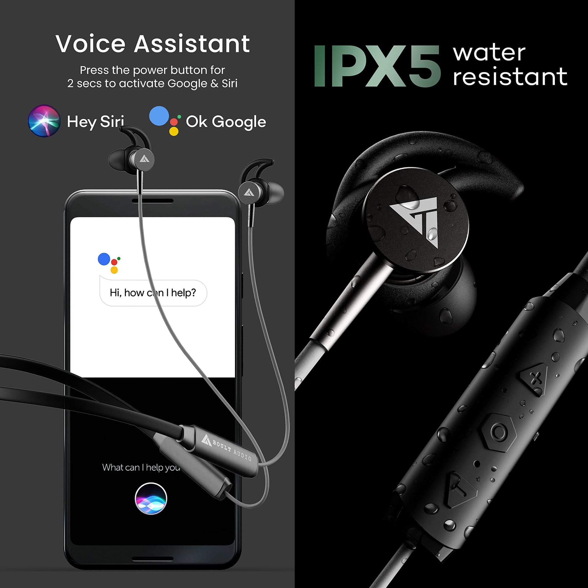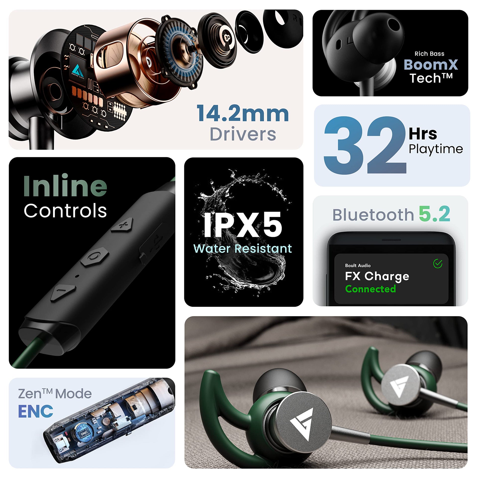 Boult Audio FXCharge Wireless in Ear Bluetooth Neckband with ENC Mic, 32H Playtime, Type-C Fast Charging (5Mins=7.5Hrs Playtime), Dual Pairing, Made in India, Biggest 14.2mm Drivers Ear Phones (Black)