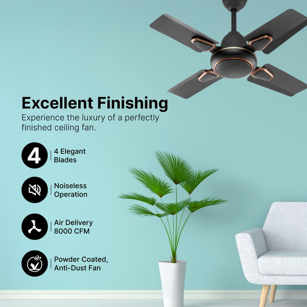 Candes Brio Turbo 600 mm / 24 Inch High Speed 4 Blade Anti-Dust Ceiling Fan Suitable for Kitchen/Veranda/Balcony/Small Room (Pack of 1,Smoke Brown)