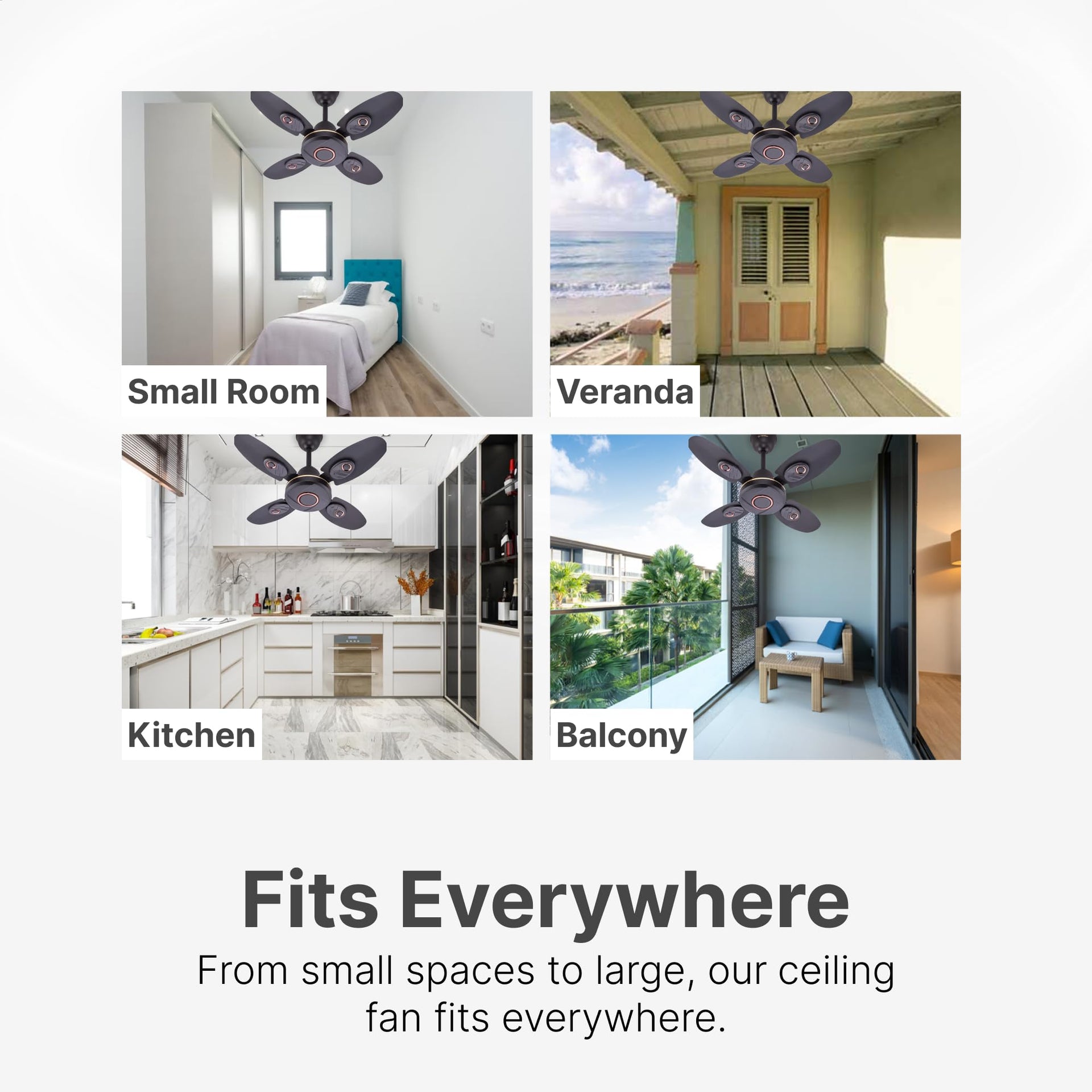 Candes Nexo Designer 600 mm /24 inch High Speed Ceiling Fan | BEE Star Rated, Noiseless & Energy Saving | Small Fan for Kitchen, Balcony & Small Room | 1+1 Year Warranty | Coffee Brown