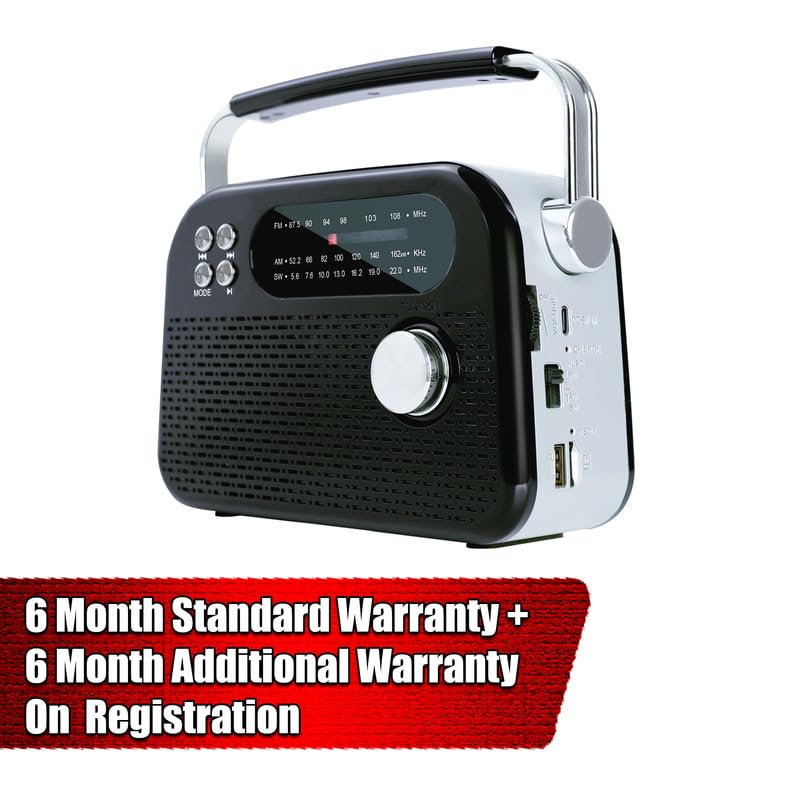 CASTOR iBELL FM820BT Portable FM Radio with Bluetooth Speaker, Rechargeable Battery, USB SD MP3 Player & Dynamic Speaker 3 Band, Black