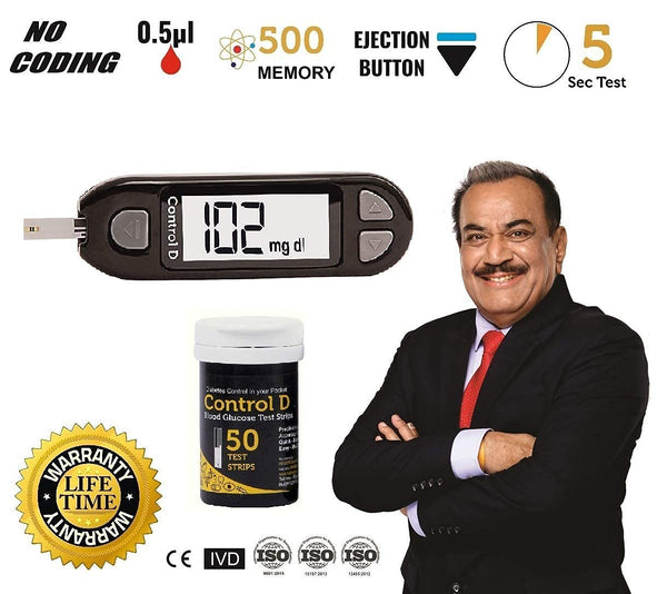 Control D Blood Glucose Monitor (Pack of 50 Strips, Black)
