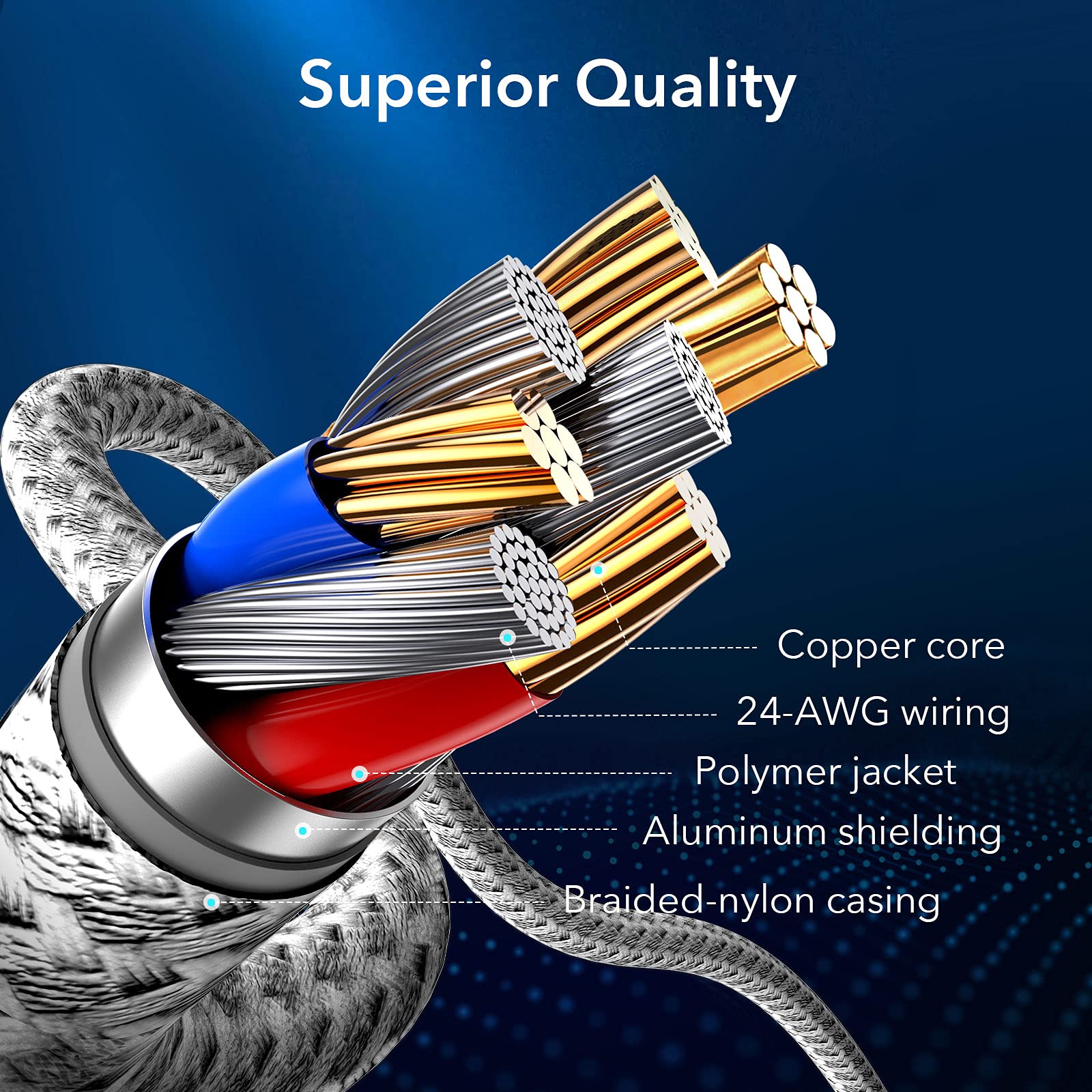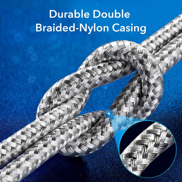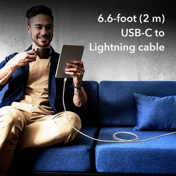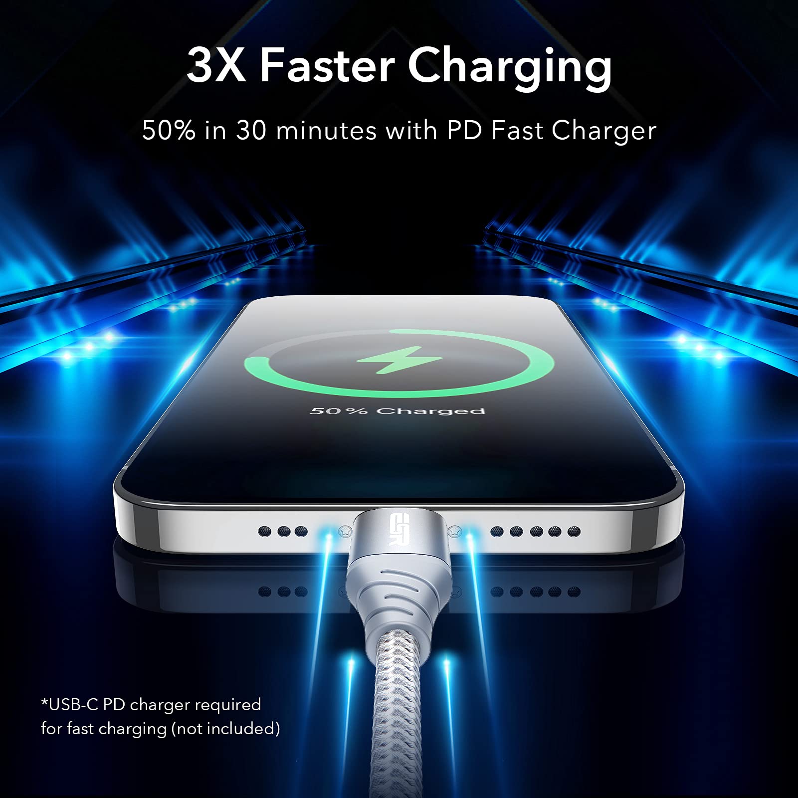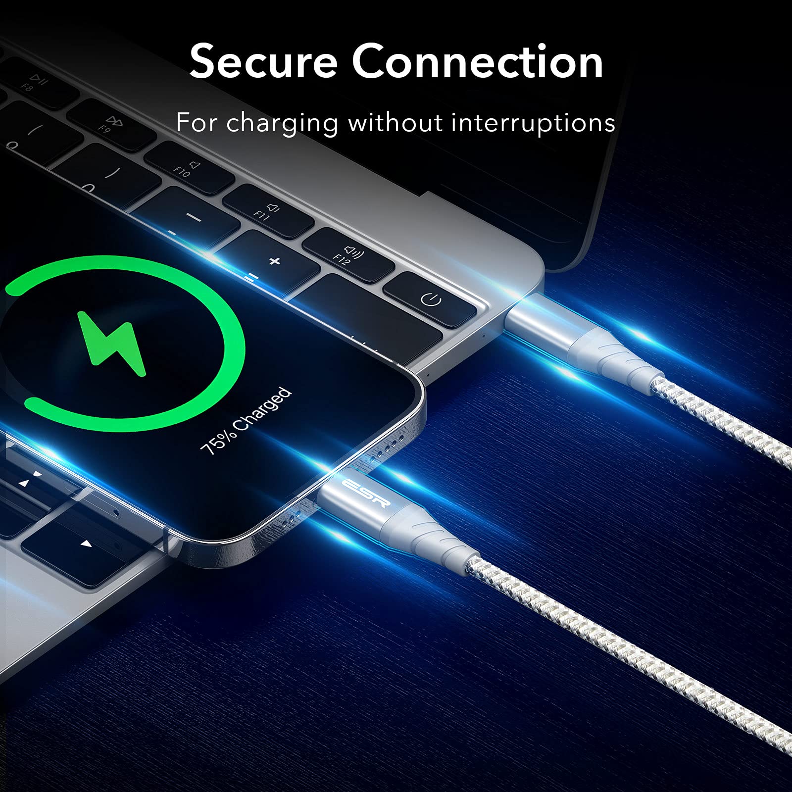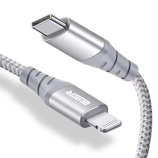 ESR USB-C to Lightning Cable, 6.5 ft (2 m), MFi-Certified, PD Fast Charging Cable for iPhone 14/14 Plus/14 Pro/14 Pro Max, iPhone 13/12 Series, iPhone SE 2022/11/XR, Braided Nylon, Silver