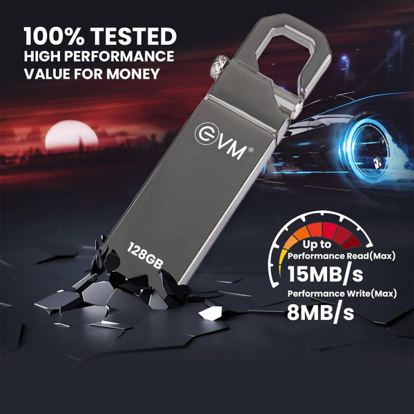 EVM EnStore 128GB Metal USB 2.0 Flash Drive - High Read Speeds up to 15MB/s & Write Speeds up to 8MB/s - Durable Metal Casing - Ideal for Data Transfer & Storage - (EVMPD/128GB)