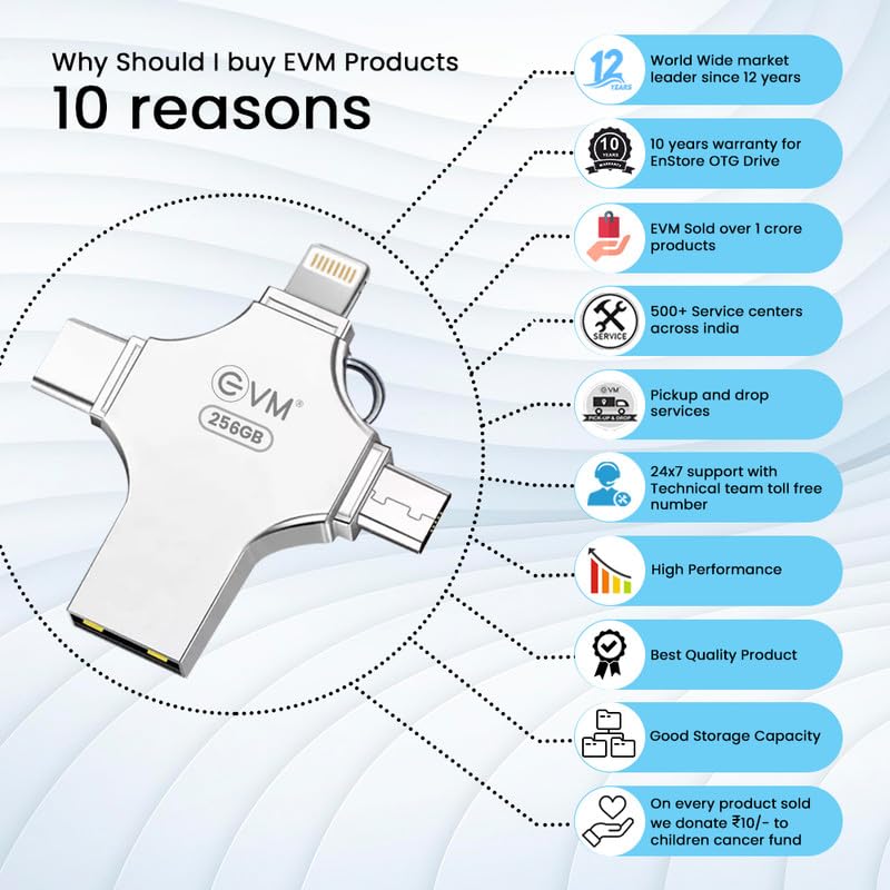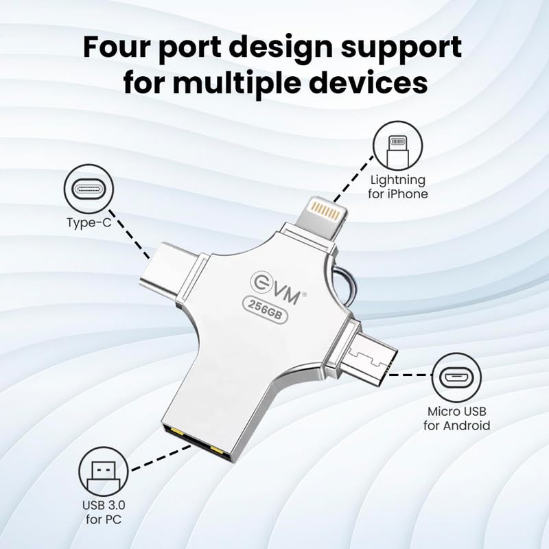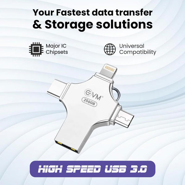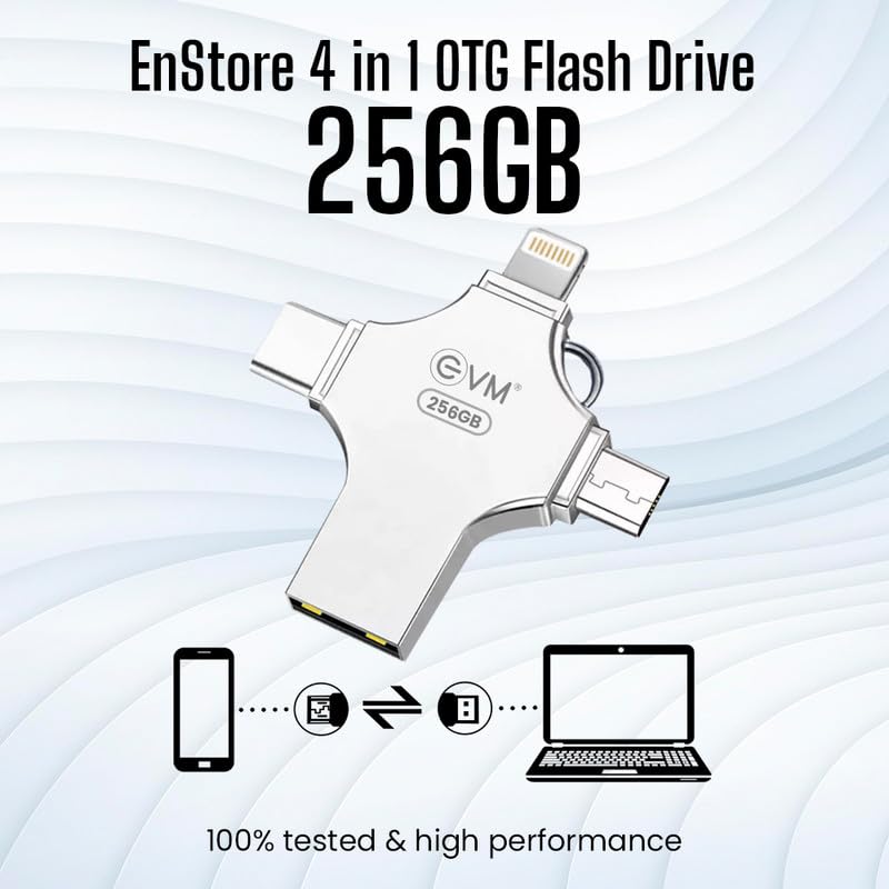 EVM EnStore 4-in-1 OTG 256GB Flashdrive-High-Speed USB 3.0 with Read Speed of 100Mb/s & Write Speed of 25Mb/s-Transfer Files Between USB-A,All Smartphones - (EVM4D/256G)