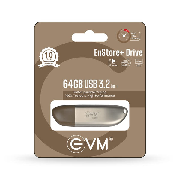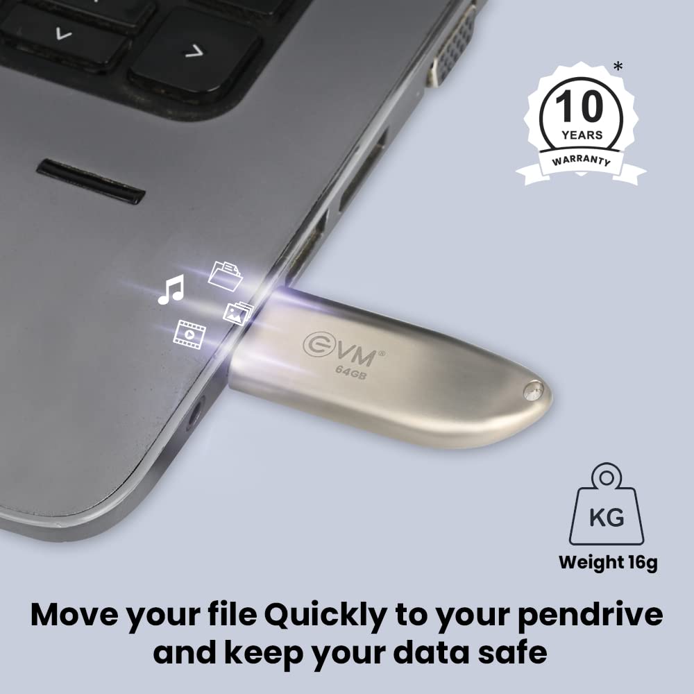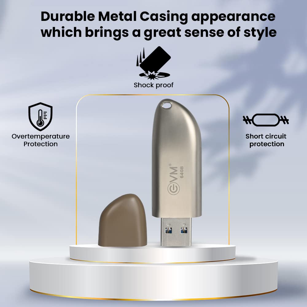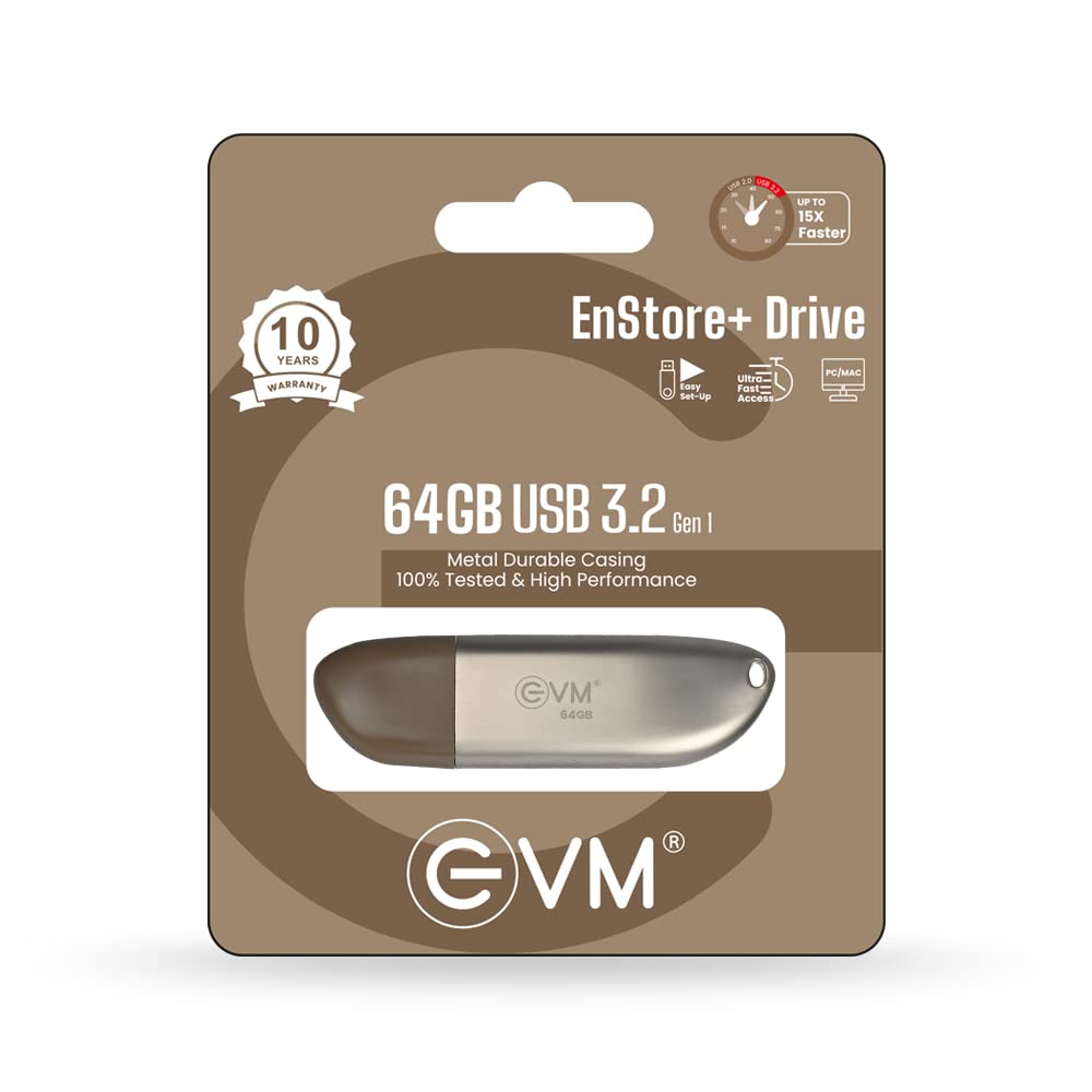 EVM EnStore+ 64GB Metal USB 3.2 Pendrive - High Speed up to 100MB/s Read & 30MB/s Write Speeds - Durable Metal Casing - Ideal for Fast Data Transfer & Storage Solution - - (EVMPD3.2/64GB)