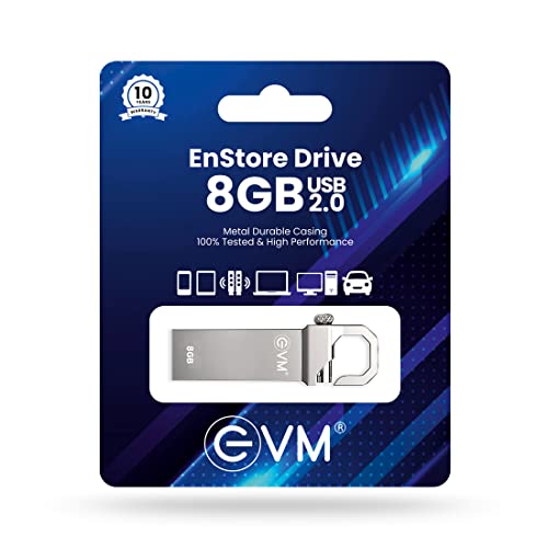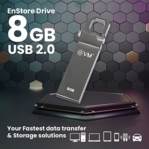 EVM EnStore 8GB Metal USB 2.0 Flash Drive - High Read Speeds up to 15MB/s & Write Speeds up to 8MB/s - Durable Metal Casing - Ideal for Data Transfer & Storage - (EVMPD/8GB)
