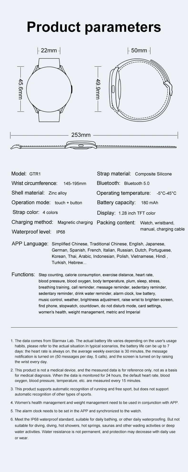 HEST HighSense GTR1 Smartwatch | IP68 Waterproof | 5-8 Days Battery Life | 100+ Sports Modes | Health Monitoring | Bluetooth 5.0 | 1.28" Display | Magnetic Charging | Customizable Watch Faces