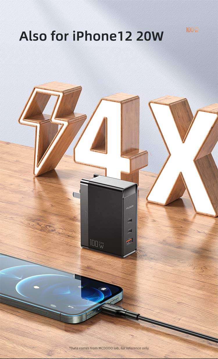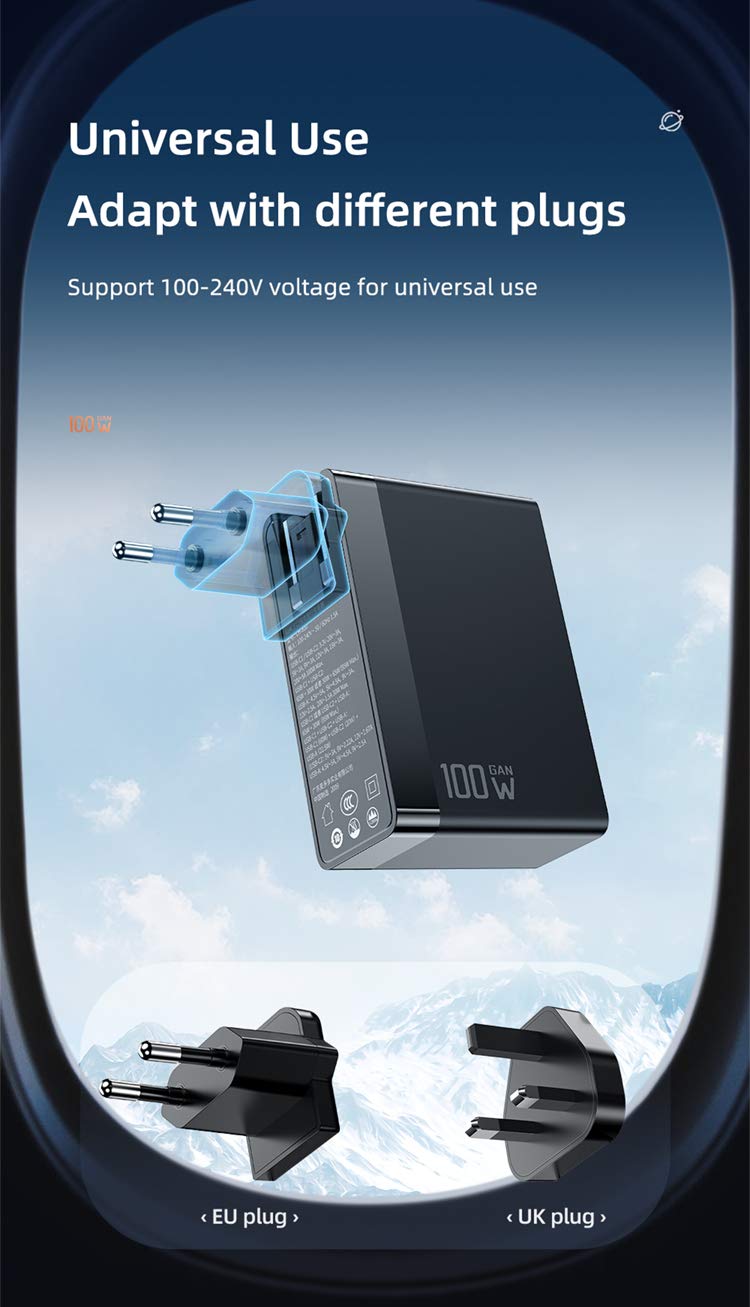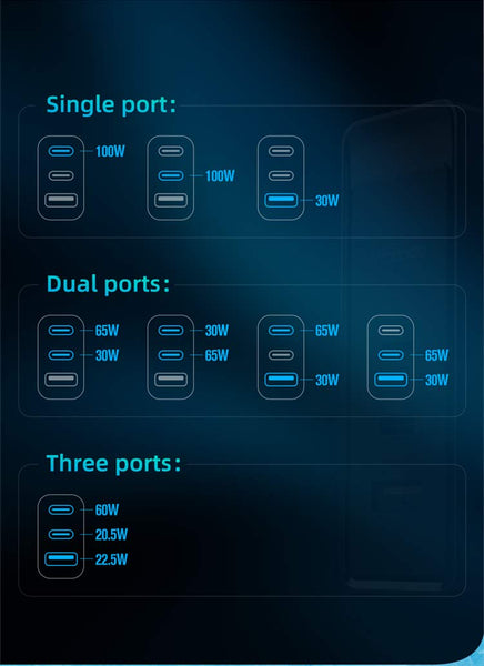 iEDS GaN 100W USB C Mini Charger 3 in 1 Multi 20W 30W 45W 65W 95W Compatible PD Charger Laptop USB Fast Charging Type C Adapter 100W Gan Charger (Black) (Cable not Included)