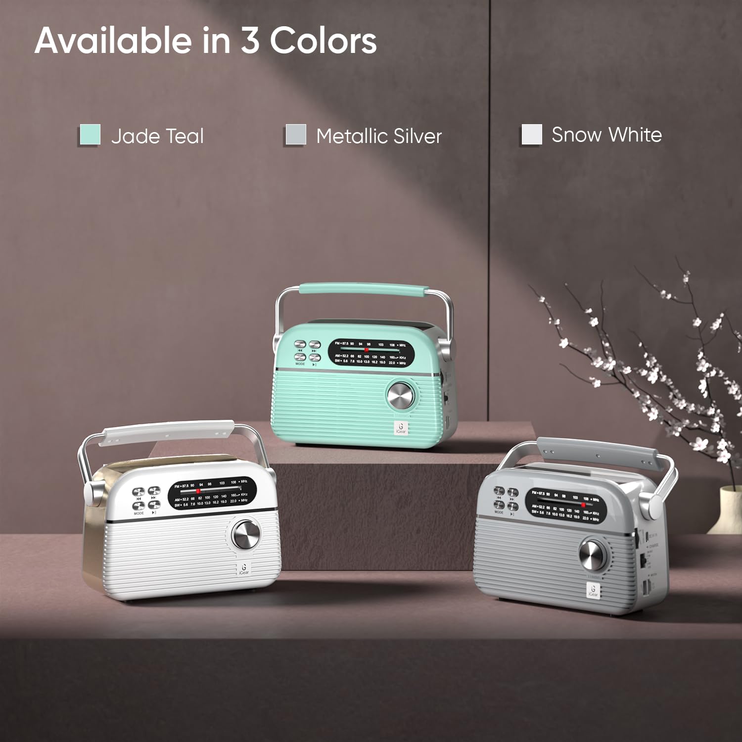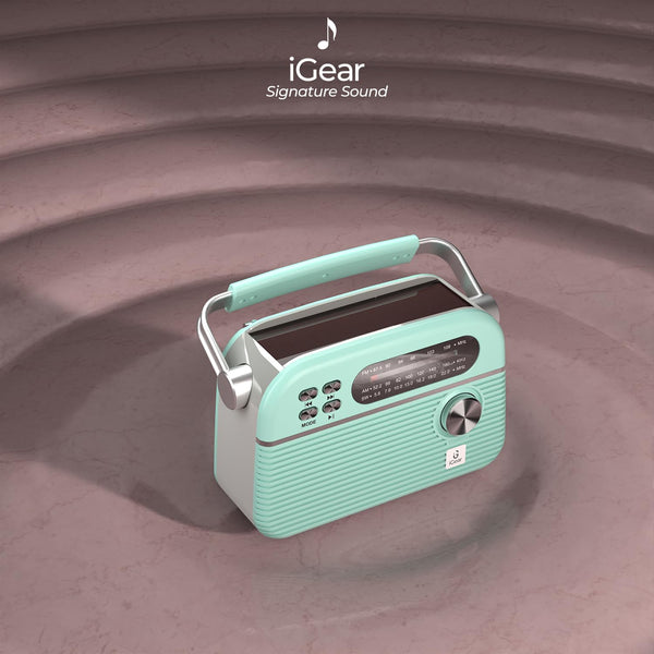 iGear Trinity Solar-Powered MP3 Player & 3-Band Radio with FM/AM/SW, Retro Modern Style, Bluetooth, USB, TF/SD Card, 1200 mAh Rechargeable Battery, Solar Charger, 1 Year Replacement Warranty (Blue)