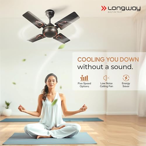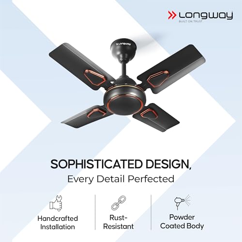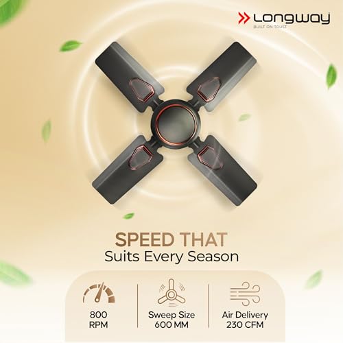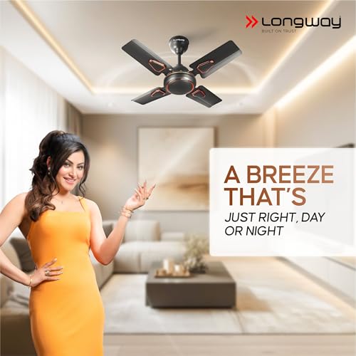 LONGWAY Kiger P1 600 mm/24 inch Ultra High Speed 4 Blade Anti-Dust Decorative Star Rated Ceiling Fan (Smoked Brown, Pack of 1)