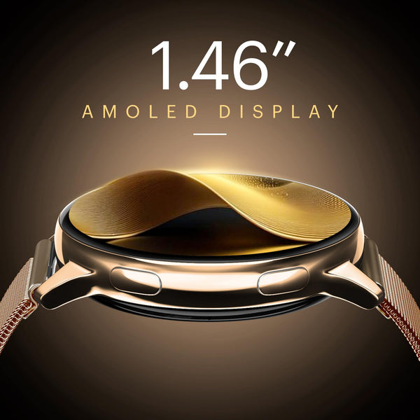 Noise Vortex Plus 1.46” AMOLED Display, AoD, BT Calling, Sleek Metal Finish with Mesh Strap, 7 Days Battery Life, All New OS with 100+ Watch Faces & Health Suite (Gold Link)