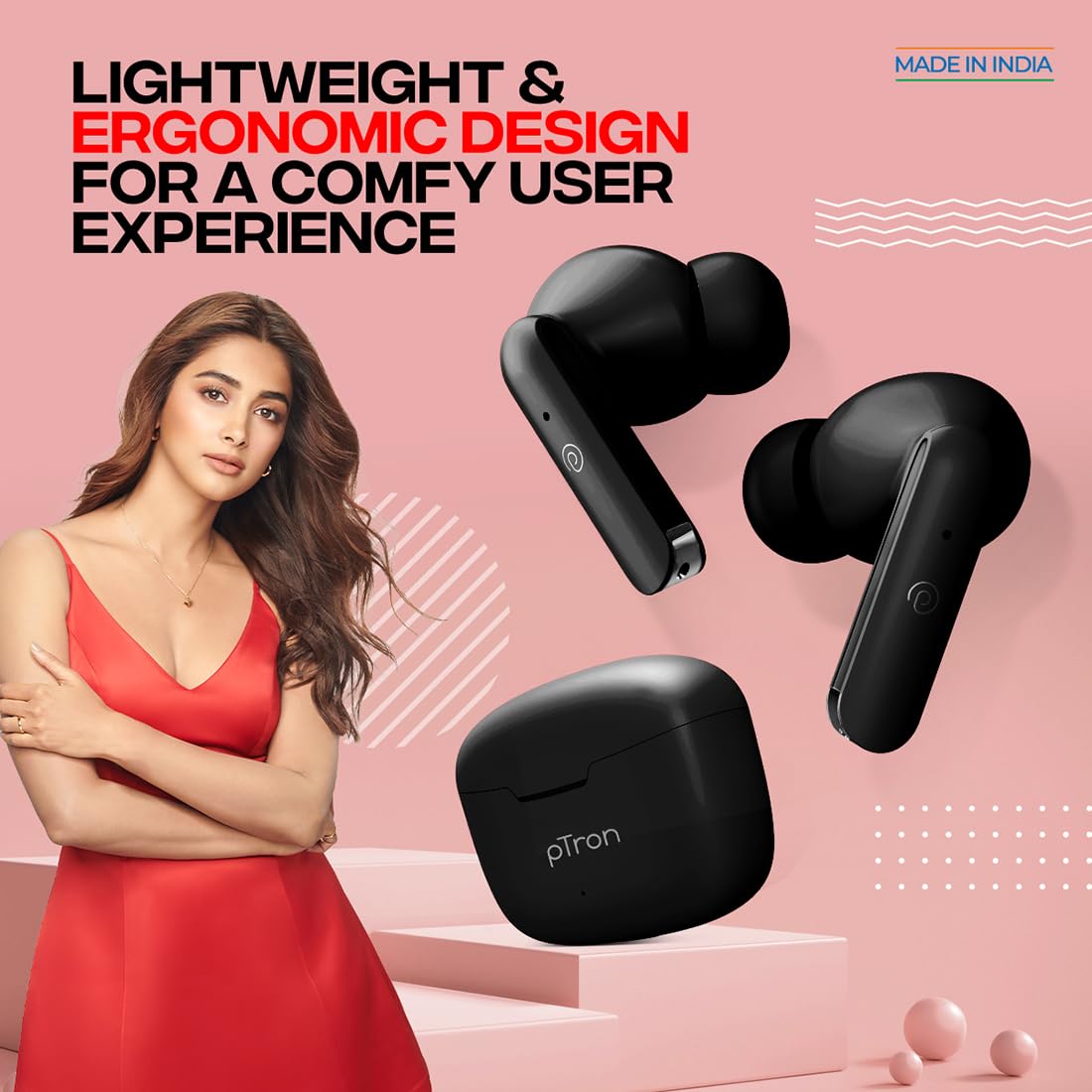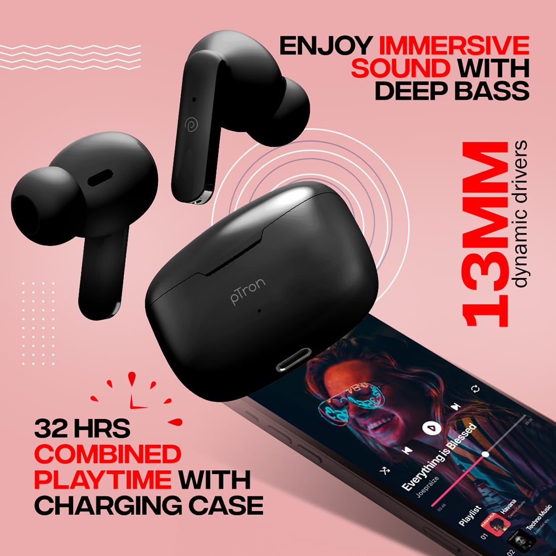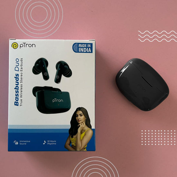 pTron Bassbuds Duo in-Ear Bluetooth 5.1 Wireless Headphones, Stereo Audio, Touch Control TWS Earbuds with HD Mic, Type-C Fast Charging, IPX4 Water Resistant & Voice Assistance